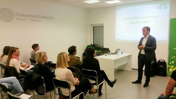 Besplatna edukacijsko – motivacijska radionica ''Zeleni ured'', dosad namijenjena zaposlenicima javnog sektora, održana je u novom izdanju, prilagođenom za predstavnike privatnog sektora, te svih zainteresiranih ciljnih skupina u Poduzetničkom inkubatoru Poreč.
