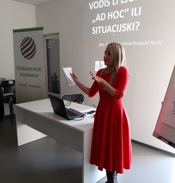 Sandra Mraović Deković iz Lift Up edukacijskog centra u Poduzetničkom inkubatoru održala je edukacija na temu „Motivacija u službi timske učinkovitosti“. Sudionici su tom prilikom naučili koliko je motivacija važna za timsku učinkovitost i koje su posljedice neprepoznavanja motivacijskih faktora djelatnika, kao i samih šefova.