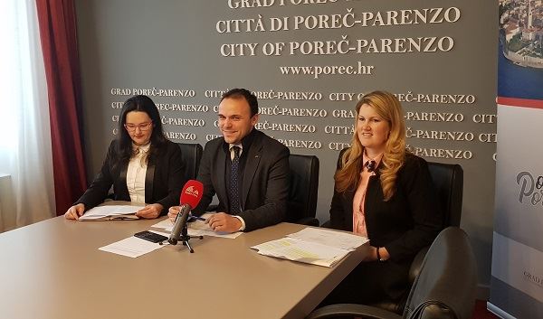 Gradonačelnik Poreča Loris Peršurić, pročelnica Upravnog odjela za opću upravu i gospodarstvo Morena Mičetić Fabić i direktorica gradskog poduzeća Parentium d.o.o Gordana Lalić predstavili su danas, 23. siječnja 2019. aktualne projekte za 2019. godinu, koji se financiraju iz EU i ostalih fondova.