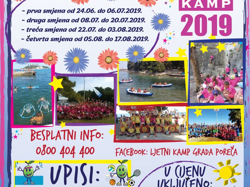 U ponedjeljak 24. lipnja, na Gradskom kupalištu, Grad Poreč-Parenzo započinje s realizacijom svog poznatog ljetnog programa za djecu predškolskog i osnovnoškolskog uzrasta „Ljetni kamp 2019.“, zahvaljujući kojem su porečki roditelji mirniji na svojim radnim mjestima dok njihova djeca kvalitetno i sigurno provode slobodno vrijeme.