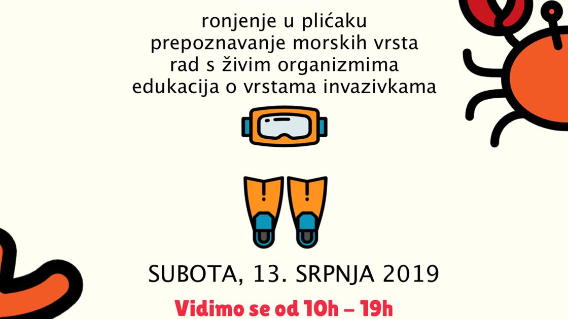 Pod vodstvom biologinja dr.sc. Barbare Sladonje i mag.oecol. Mirele Uzelac te vrijednih volontera, svi zainteresirani moći će zaroniti u obližnji plićak i naučiti prepoznavati česte vrste zelenih i smeđih algi, bodljikaša, školjkaša, spužvi, rakova ali i štetnih invazivnih vrsta.