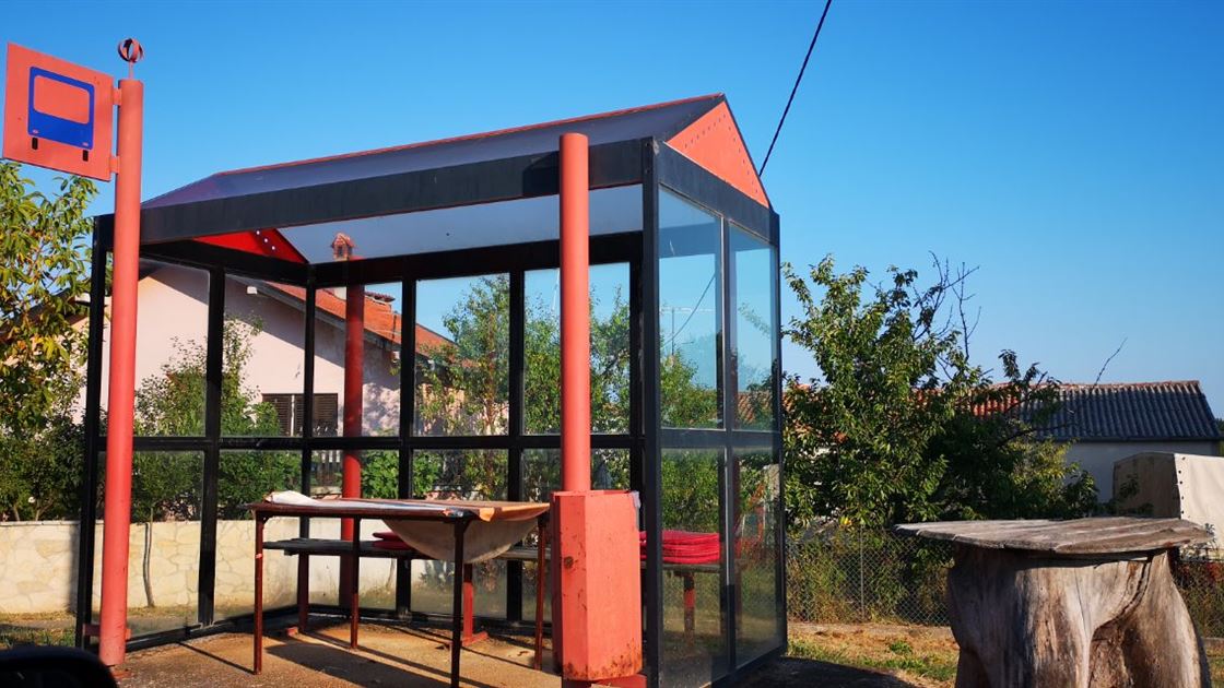 Autobusne čekaonice, koje su oštećene tijekom vremenskih neprilika ili devastacijom, sanirane su u naseljima Antonci, Veli Maj, Vranići, Kadumi, Jasenovica, Kirmenjak, Bonaci, Nova Vas i Baderna . Do početka školske godine sanirat će se preostala oštećenja i urediti autobusne čekaonice. Radove na sanaciji autobusnih čekaonica izveo je Staklarski obrt Pino Staklar.