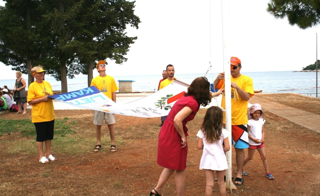 Šezdesetak mališana u pratnji njihovih roditelja, nona i nonića pozdravili su dizanje zastave Kampa, ceremoniju kojom se već tradicionalno obilježava početak rada Kampa. Zastavu je u pratnji trenera i djece ove godine u ime Grada Poreča-Parenzo podignula pročelnica Upravnog odjela za društvene djelatnosti, socijalnu skrb i zdravstvenu zaštitu Vesna Kordić.