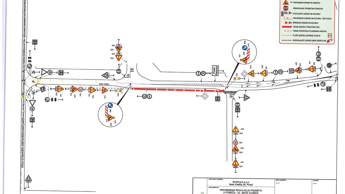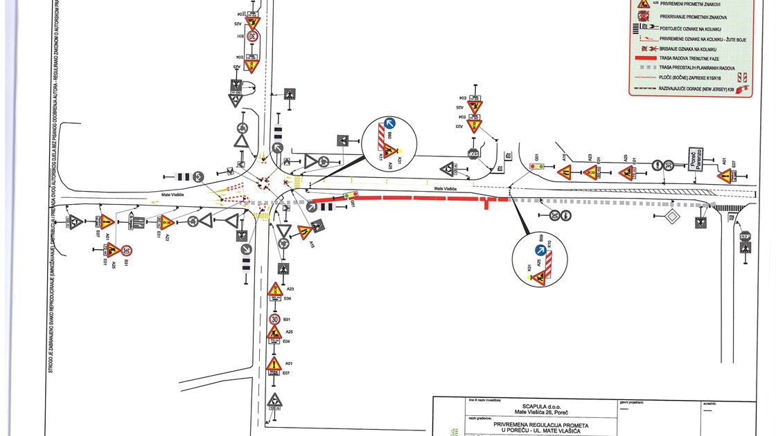 U prilozima se nalaze rješenja privremene prometne regulacije za radove kraj montažnog rotora, te na dijelu zelene površine uz trgovačke centre.