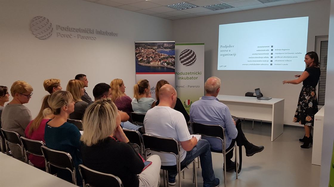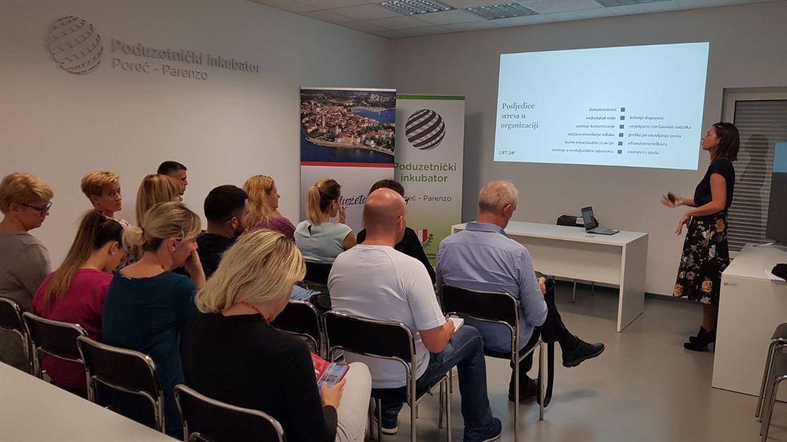U okviru programa manifestacije Mjesec poduzetništva u Poreču, u srijedu, 23. listopada, u Poduzetničkom inkubatoru u Žbandaju održala se edukacija „Stress free“ kultura u organizaciji koju je vodila Sandra Mraović Deković iz Lift Up edukaciiskog centra.