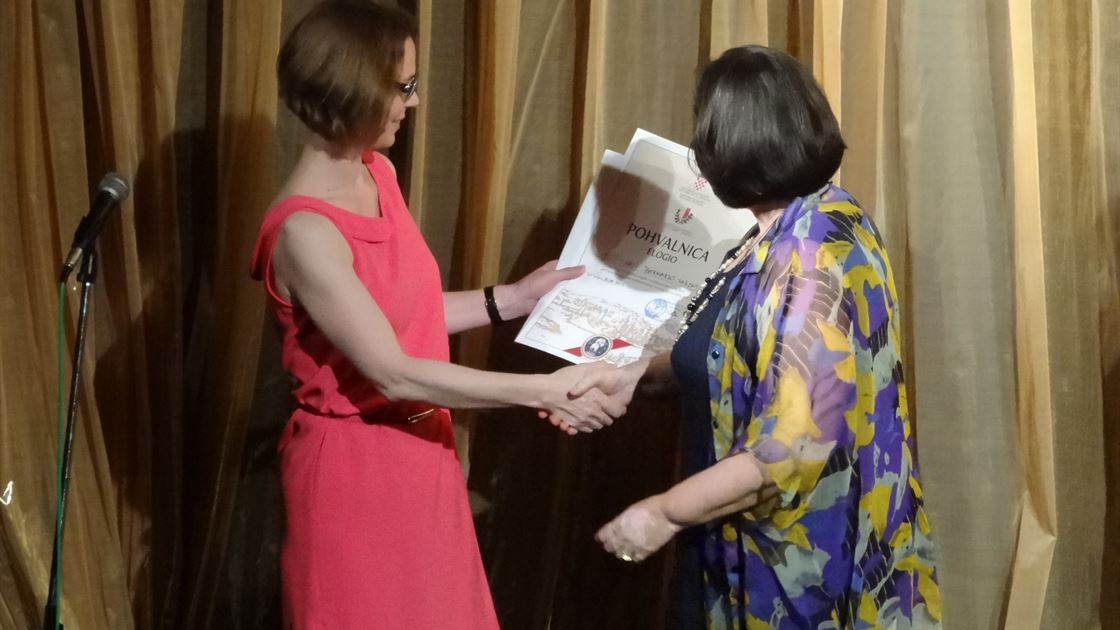 Ovom je prilikom dogradonačelnica uručila jednu veliku pohvalnicu ravnateljici škole Ester Zarli, za brojne uspjehe koje su učenici tijekom školske godine ostvarili na raznim sportskim natjecanjima, te zahvalnicu njihovoj mentorici i voditeljici, profesorici tjelesnog odgoja Anamariji Jakovčić.