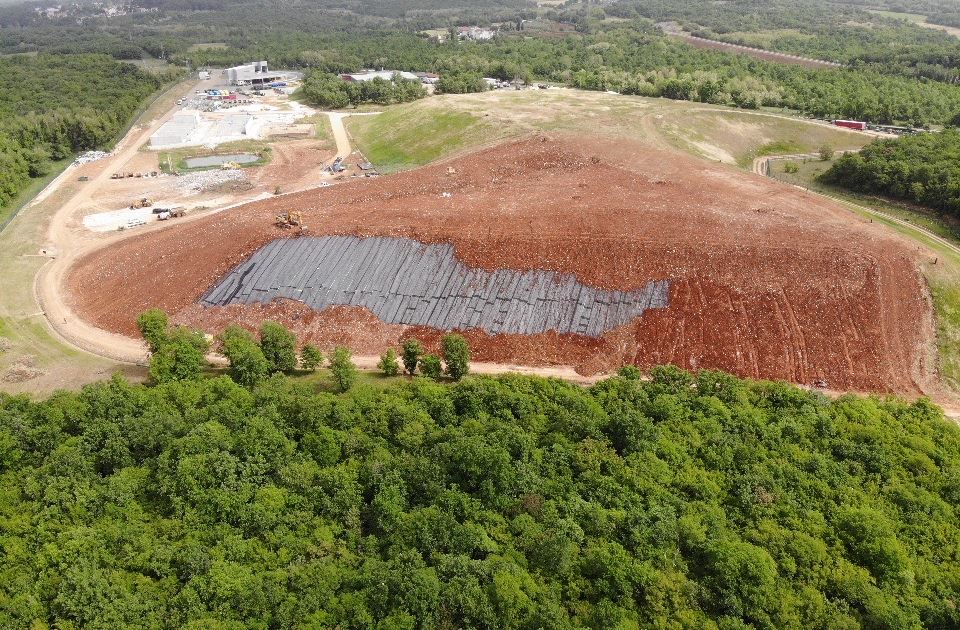 - Odlaganje više nije dovoljno i zato imamo cijeli sustav kao što je Kaštijun i cijela ova infrastruktura. Ovdje se radi o sanaciji i zatvaranju postojeće odlagališne plohe, konkretno o sanitarnoj plohi gdje se odlagao sanitarni otpad. Ona se sad prekiva sa završnim prekrivnim sustavom, to je niz geosintetskih materijala ukupne površine oko 30.000 metara kvadratnih. Ti materijali omogućuju ono što je cilj sanacije, da nema utjecaja na podzemlje, zrak i tlo, na način da se sprječava dotok oborinske vode u otpad i otplinjavanje odloženog otpada provodi se u kontroliranim uvjetima, postavlja se aktivni sustav otplinjavanja, preko 14 zdenaca koji se spajaju na sustav s prve plohe, kazao je Barbić. Dodao je kako je tijelo odlagališta već formirano, radi se završni rekultivacijski sloj i postavlja sustav otplinjavanja, a istovremeno se radi i odvodni kanal za prikupljanje i odvodnju oborinskih voda , slijedi još sama rekultivacija i sijanje trave, a radovi su u skladu s terminskim planom pa se završetak očekuje u zadanom roku.