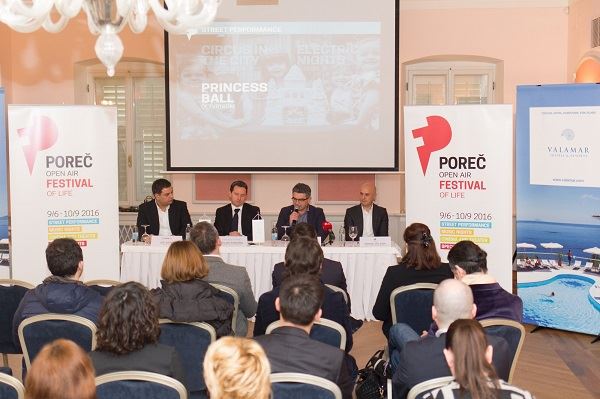Prvi Poreč Open Air Festival, koji će se održavati od 9. lipnja do 10. rujna 2016. na brojnim gradskim lokacijama u Poreču i tijekom kojeg će Porečanima i turistima biti ponuđeno više od 100 glazbenih i kulturnih događanja, predstavljen je na konferenciji za novinare danas, 3. ožujka 2016. u Vili Polesini.