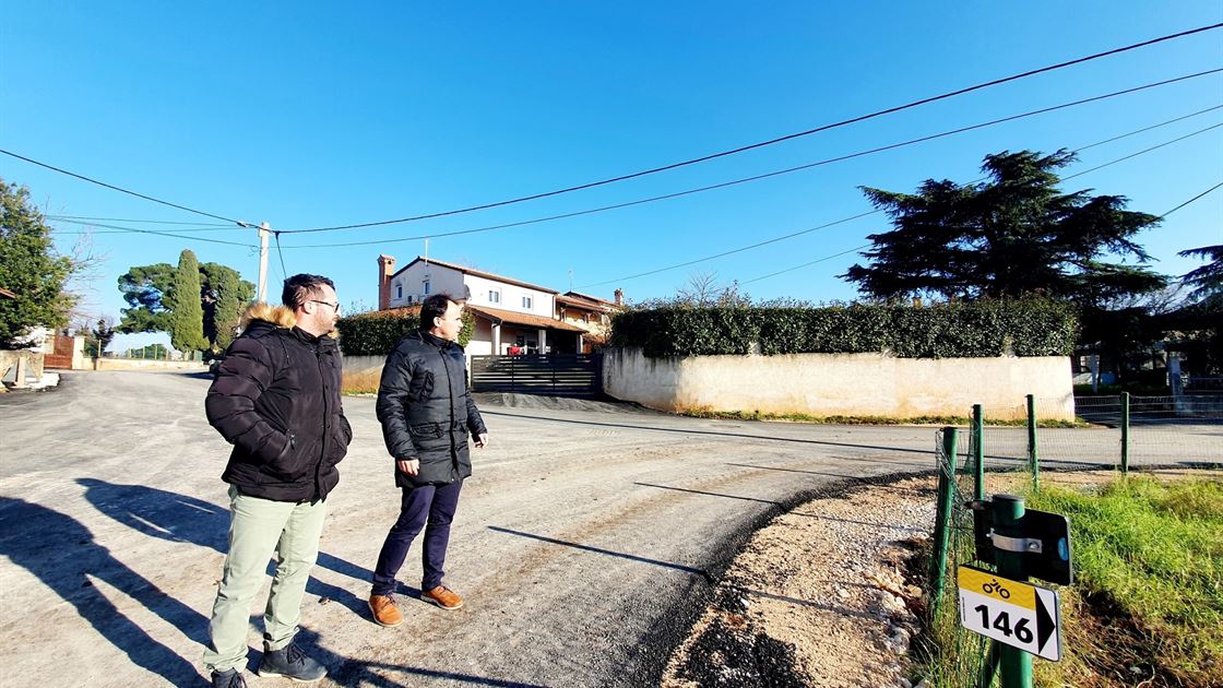 Poreč, 13.01.2021. Asfaltiranje prometnice Antonci – Kosinožići u dužini od 510 metara pri samom je kraju, nakon što je dionica St. Portun – Antonci obnovljena i asfaltirana još prošle godine. Radi se o jednoj od županijskih prometnica koja je, zbog prijašnjeg stanja, bila među prioritetima za obnovu. Tijekom asfaltiranja posljednjih dionica, lokalna se cesta proširila u prosjeku za 0,70 m, na prosječnu ukupnu širinu ceste od 5,20 m, što je financirao Grad Poreč-Parenzo, dok su preostali dio troškova sufinancirali Odvodnja Poreč, Županijska uprava za ceste koja i upravlja tom prometnicom te Istarski vodovod Buzet. Gradilište je danas obišao i gradonačelnik Poreča Loris Peršurić zajedno s Daliborom Radešićem, stručnim suradnikom za izgradnju i održavanje komunalne infrastrukture.
