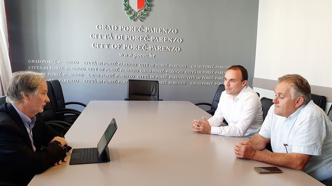 Poreč, 27.09.2021. Gradonačelnik Poreča Loris Peršurić i zamjenik gradonačelnika iz redova pripadnika talijanske nacionalnosti Ugo Musizza susreli su se danas u gradskoj palači s predsjednikom Talijanske Unije Mauriziom Tremulom. Povod sastanku bio je dogovor o daljnjoj suradnji, s obzirom na to da je ovo bio prvi sastanak nakon održanih lokalnih izbora u svibnju.