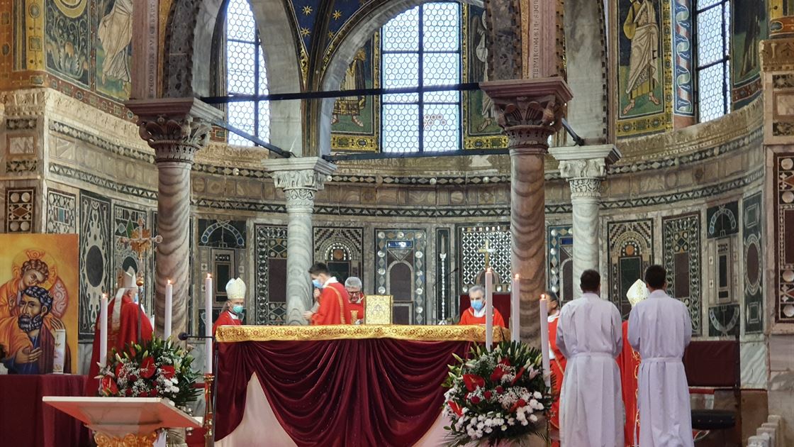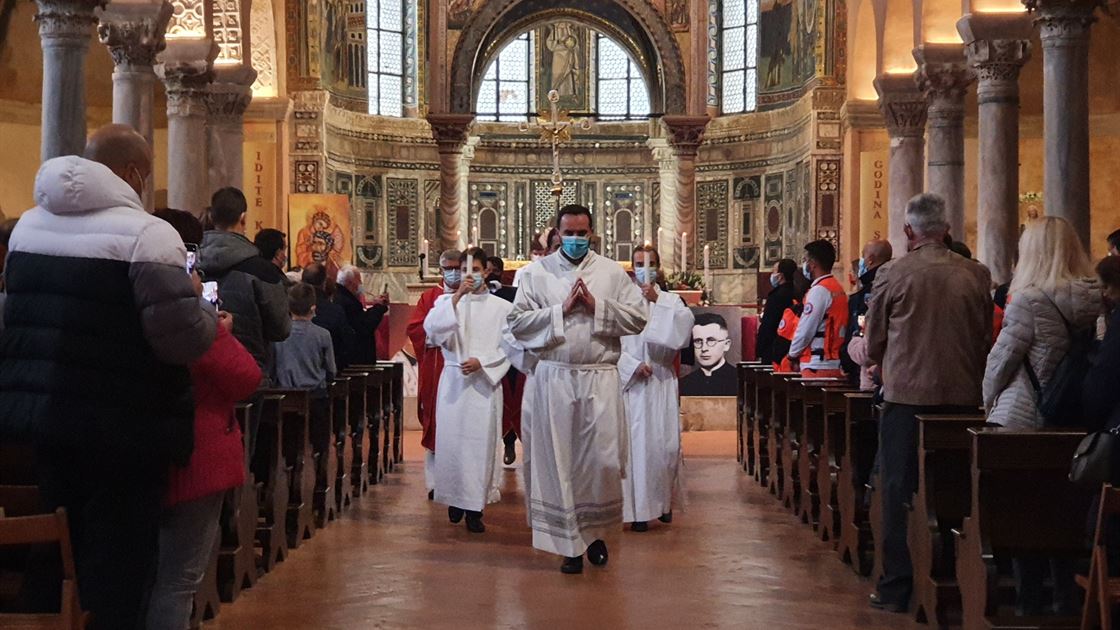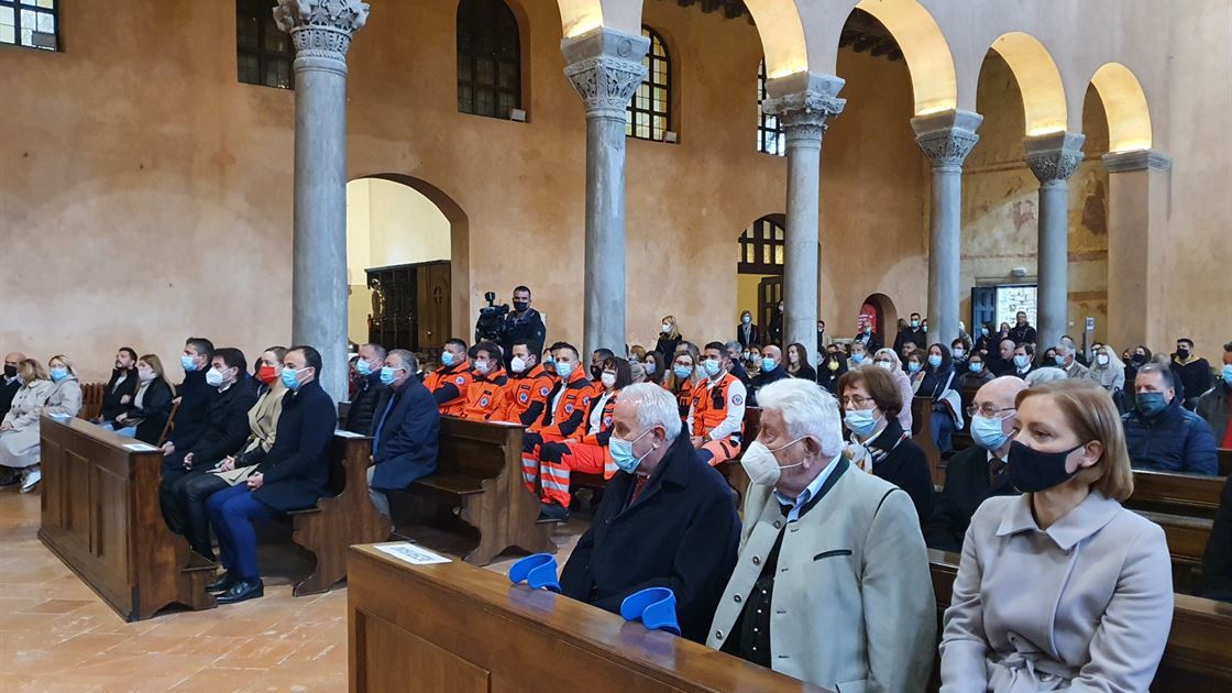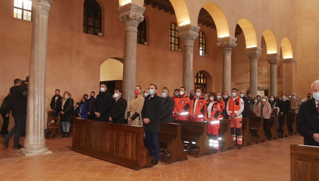 Poreč, 22.11.2021. Porečani su ovogodišnju proslavu blagdana gradskog patrona - Svetog Maura obilježili u smanjenom obliku, poštujući trenutno važeće epidemiološke mjere i ograničavanje okupljanja. Središnji dio proslave bila je svečana sveta misa u Eufrazijevoj bazilici, dok je tradicionalna svečana procesija gradskim ulicama s relikvijama sveca ove godine izostala, kao i proslava na Trgu slobode uz Festival palente.
