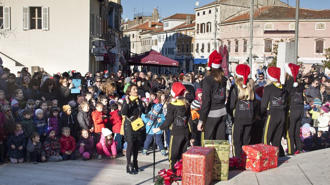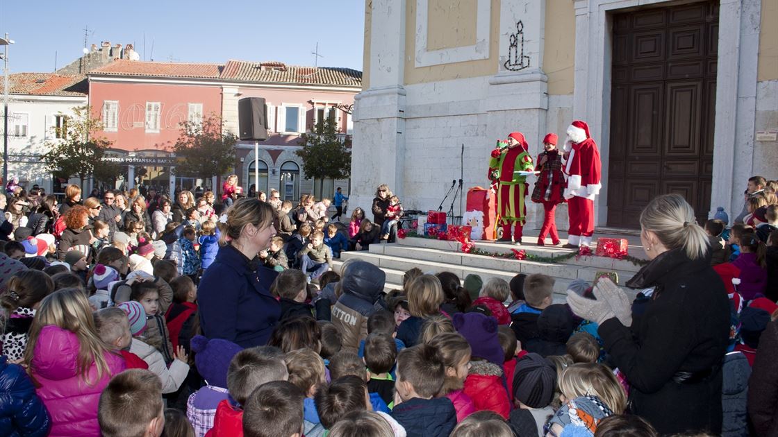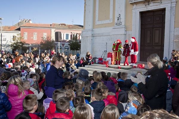Mnoštvo mališana iz porečkih vrtića i škola okupilo se u dopodnevnim satima na Trgu slobode danas, 11. prosinca 2015., kako bi zajedno dočekali Djeda Mraza, koji je ove godine dopješačio na Trg. Kako je i sam rekao, obzirom da ovdje nema snijega, saonice i sobove morao je ostaviti na Učki i prohodati do Poreča kako bi razveselio okupljenu djecu, koja su mu zajedno s roditeljima i tetama pripremila veseo doček.