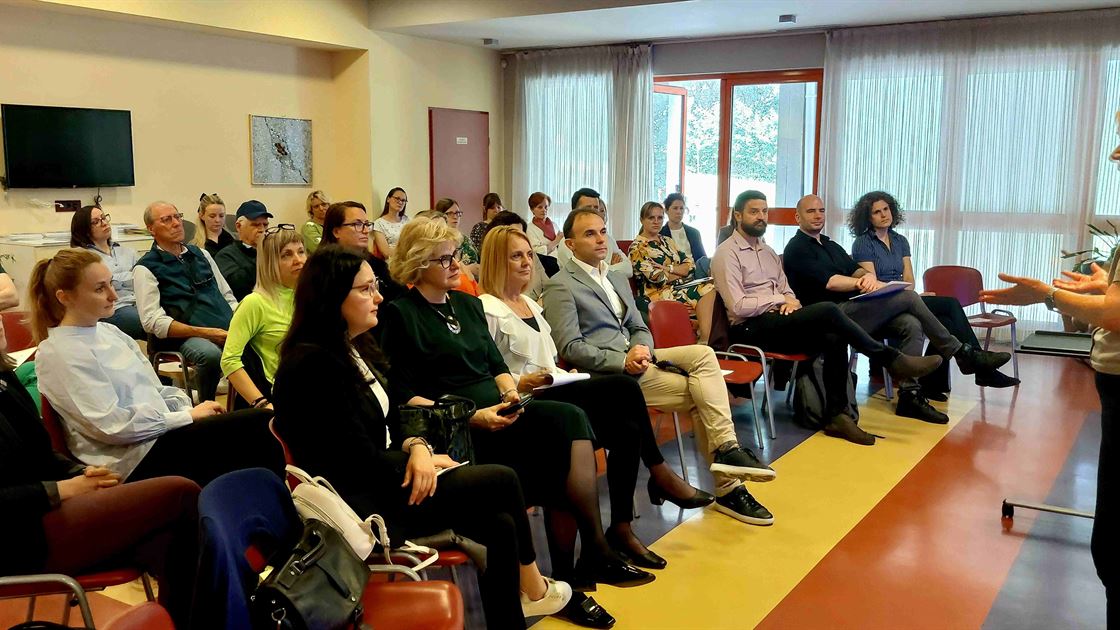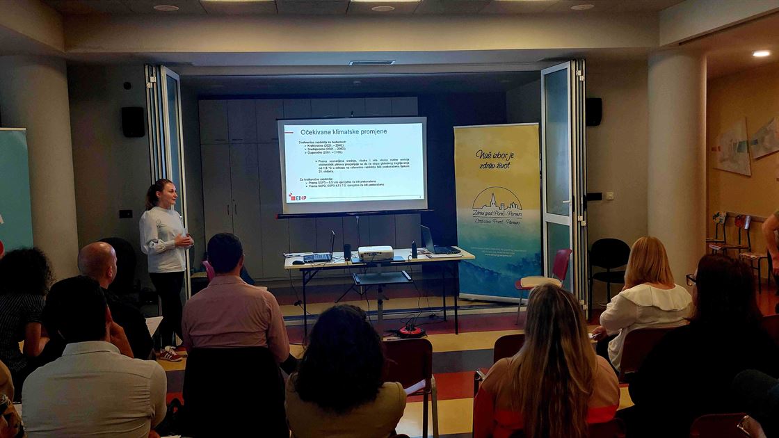 La direttrice dell’impresa per i servizi comunali Parentium d.o.o., Gordana Lalić, ha presentato la Strategia di adattamento ai cambiamenti climatici della Città di Parenzo, le misure di adattamento in settori di particolare importanza per la circoscrizione della città di Parenzo, che porta, il in primo luogo la salute delle persone, e ha presentato progetti e attività concrete con cui la Città di Parenzo risponde al cambiamento climatico armonizzando sviluppo sostenibile, salute e pianificazione territoriale. Sono intervenuti i docenti ospiti dell'Istituto per l'energia, Hrvoje Požar, Matea Kalčićek e Željka Fištrek sui cambiamenti che ci attendono in relazione alle differenze di temperatura e al cambiamento climatico. L'aumento medio della temperatura da 1 a 1,4 ºC fino al 2040 nella Repubblica di Croazia, l'aumento minimo e massimo della temperatura e le notti calde influenzeranno l'aumento delle condizioni meteorologiche estreme. L’aumento della temperatura in futuro, e già adesso, colpisce la vegetazione, la produzione alimentare, la biodiversità, un maggior numero di parassiti e agenti patogeni nelle piante, negli animali e nell’uomo, colpisce l’acqua e il livello del mare, un maggior numero di specie tropicali invasive nel mare, minaccia di cambiare la maricoltura e determina quali pesci e molluschi saranno in grado di sopravvivere in un mare più caldo. Hanno fornito un esempio di come in futuro, a causa del riscaldamento, possiamo aspettarci che invece di spigole e ostriche che preferiscono l’acqua più fredda, avremo più orate e cozze o altri pesci e molluschi che possono sopravvivere nell’acqua di mare più calda. Negli esseri umani, il conseguente aumento della temperatura ha dimostrato di causare un aumento del numero di malattie respiratorie, gstrointestinali e di altro tipo. Hanno sottolineato anche le conseguenze della cementificazione e dell'asfaltatura delle aree verdi e hanno sottolineato che le ricerche dimostrano che ci troviamo in un luogo dove non è possibile abbattere un solo albero. Hanno sottolineato in particolare l’importanza di preservare le vecchie foreste e gli alberi che sono già forti e resistenti al clima e ad altri cambiamenti, oltre a piantare nuovi alberi, perché il monitoraggio ha dimostrato che, a causa di condizioni meteorologiche estreme, molti alberi giovani piantati falliscono. I relatori hanno inoltre presentato progetti su cui sta lavorando l'Istituto, oltre ad esempi pratici e semplici metodi con cui è possibile intervenire nello spazio urbano a beneficio della protezione dello spazio, del verde, di una maggiore permeabilità del suolo in caso di alluvioni, di differenze di temperatura e a beneficio delle persone e, in ultima analisi, della loro salute.