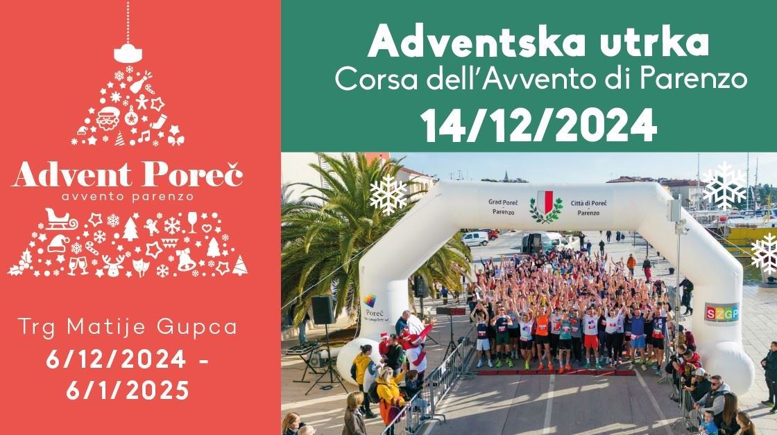 Atletski Klub Maximvs u suradnji s Adventom Poreč – Avvento Parenzo i ove godine organizira humanitarnu Adventsku utrku Poreč/Corsa dell’Avvento di Parenzo, koja će se održati u subotu, 14. prosinca 2024. godine, sa startom u 10 sati za djecu i u 11 sati za odrasle na porečkom Adventu.