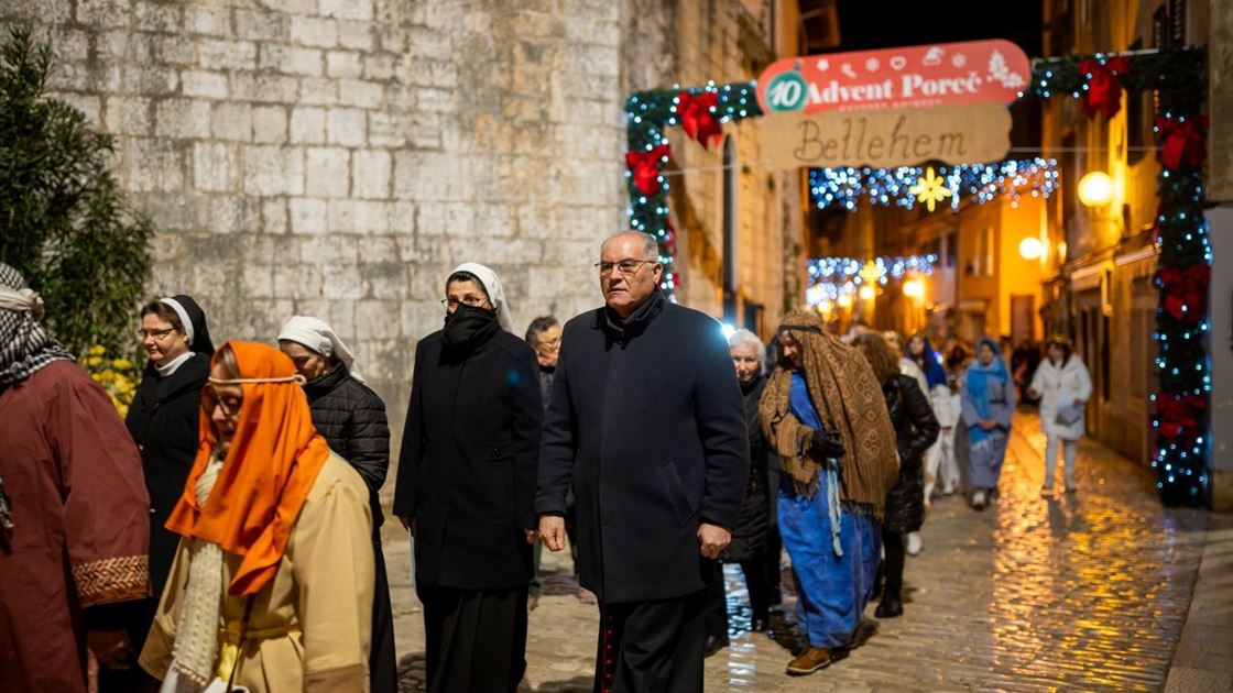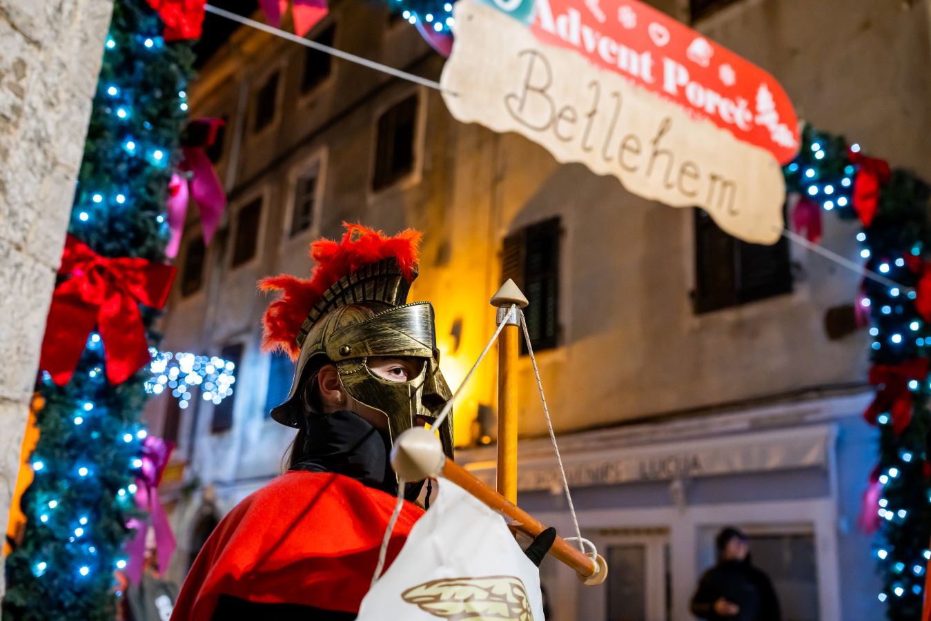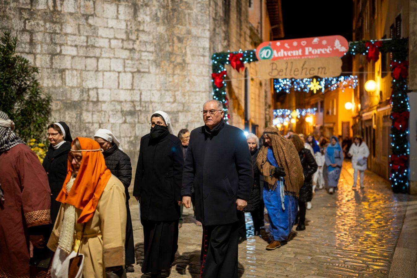 Porečka starogradska jezgra sinoć je, petu godinu, ugostila već tradicionalno uprizorenje živih jaslica u organizaciji Župe Poreč. Ovom se događaju rado pridružuju i sudjeluju župljani i iz susjednih župa Poreča i okolice. Tako se te večeri mnoštvo ljudi svih generacija prošetalo ulicama i trgovima prateći svetu obitelj, uz anđele, pastire, stražare, popisivača stanovništva, razne stanovnike Betlehema i zanatlije, dok su priču ukazanja kazivali pripovjedači, a glazbenu pratnju osigurali članovi zbora porečke župe, sve popraćeno prigodnom dekoracijom, a bile su tu i životinje iz štalice. Šetnjom od Trga slobode, do Trga Matije Gupca, na kojem se održava Advent Poreč, i posjetom Sveta tri kralja štalici smještenoj u paviljonu u parku, završilo je uprizorenje živih jaslica u svečanoj i posebnoj atmosferi zajedništva. U ovogodišnjem događaju sudjelovao je najveći broj volontera, a uprizorenje je pratio i porečko-pulski biskup mons. Ivan Štironja predstavnici Župe Poreč i Porečko-pulske biskupije te predstavnici Grada Poreča.