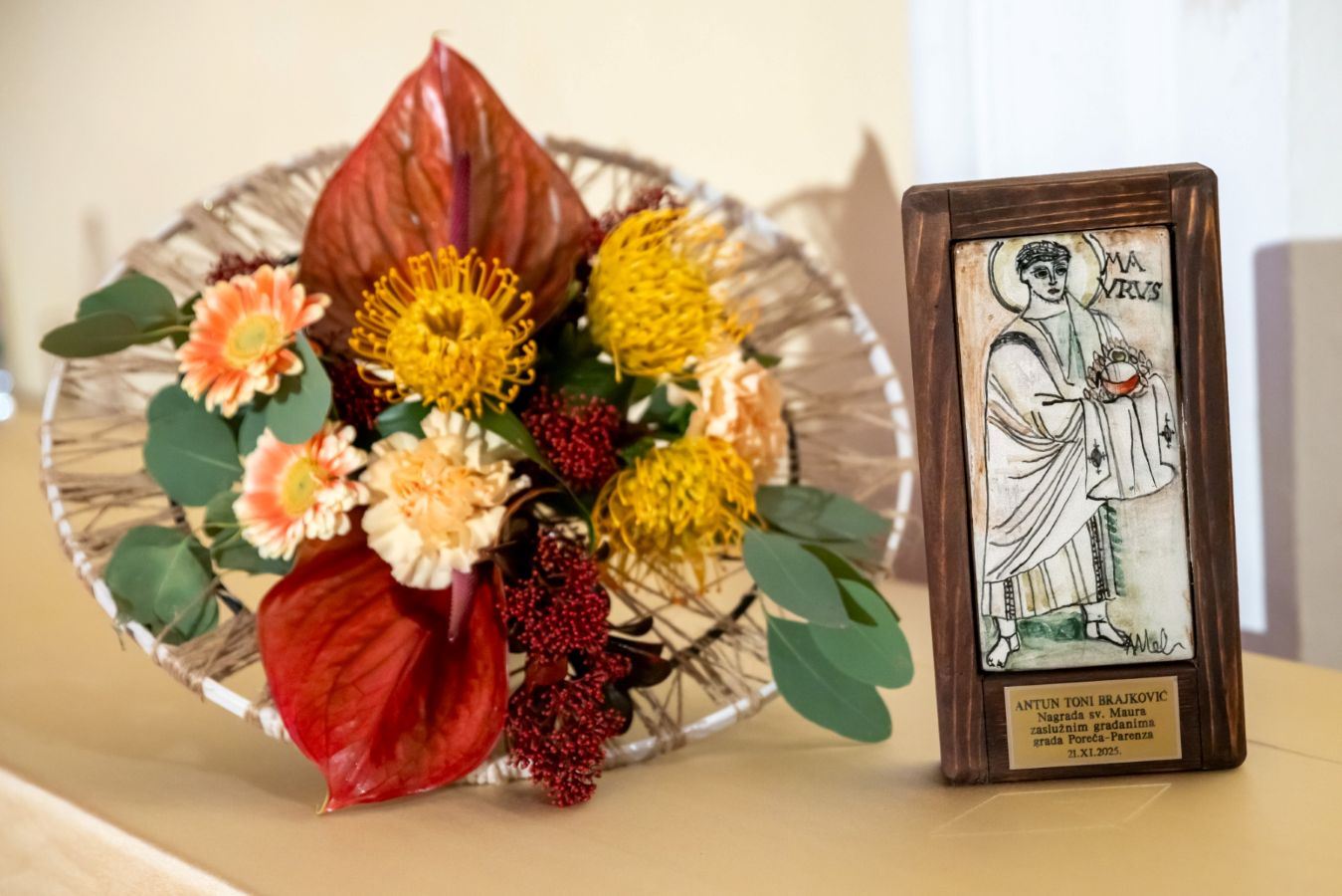 Na samom kraju svečanosti okupljenima se obratio i biskup Štironja, koji je naglasio važnost čuvanja duhovnih i kulturnih vrijednosti koje povezuju zajednicu, kao i pohvalio ovakvu gestu kojim zajednica nagrađuje pojedince za njihov rad i doprinos u kulturi i za razvoj društva. Ovom prilikom čestitao je svim Porečankama i Porečanima blagdan svetoga Maura. Najavio je i svečanu misu s procesijom u petak, 21. studenog 2025., s početkom u 10.30 sati u Eufrazijevoj bazilici.