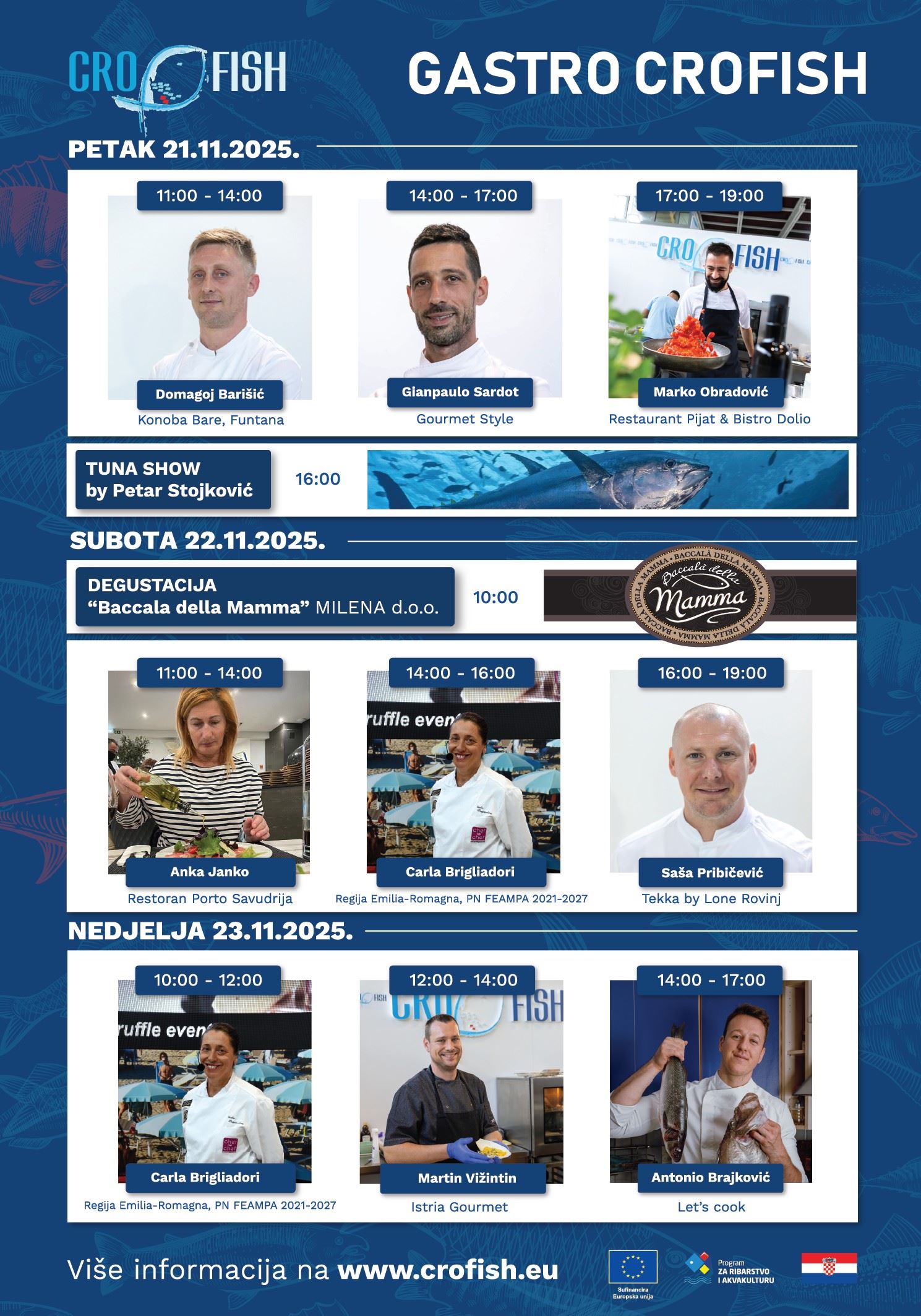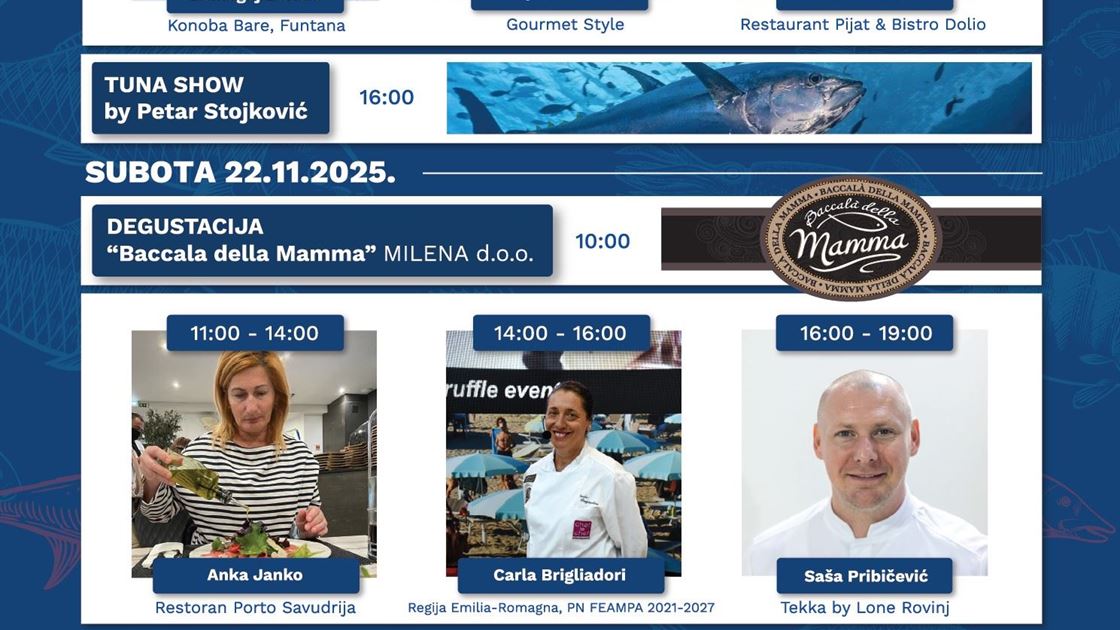 U sklopu manifestacije održavat će se svakodnevni Cooking show program, u kojem riba, neizostavna namirnica mediteranske prehrane, dolazi do punog izražaja zahvaljujući mašti vrhunskih chefova. Posjetitelji će vidjeti kako se filetira tuna, a moći će kušati morske i slatkovodne delicije koje pripremaju kuhari iz Istre i gosti iz ŠRD Đurđenovac. Osim domaćih kuhara, u Poreč dolaze i renomirani chefovi iz Italije, čime je gastro ponuda ovogodišnjeg sajma najveća do sada.