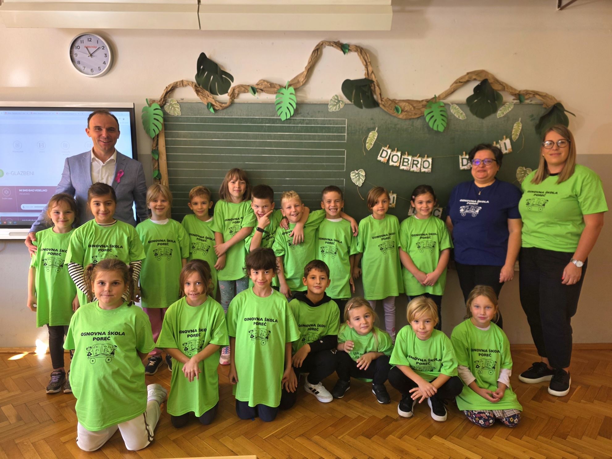 Nakon druženja, gradonačelnik im je uručio majice s logom škole – poklon Grada Poreča-Parenzo koji prvašići svake godine dobivaju u sklopu Dječjeg tjedna. Svaka škola sama osmišljava izgled i boju svojih majica, a učenici ih s ponosom nose na školskim, sportskim i drugim zajedničkim događanjima.
