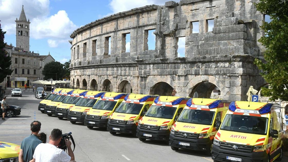 Pulska Arena danas je poslužila kao kulisa za primopredaju 10 novih ambulantnih vozila koje je Istarska županija nabavila za županijski Nastavni zavod za hitnu medicinu i to po dva vozila za Ispostave Pula, Pazin, Labin, Poreč i Umag. Svečanosti su prisustvovali istarski župan Boris Miletić, zamjenica župana Gordana Antić, službenica koja privremeno obavlja poslove pročelnice UO za zdravstvo i socijalnu skrb Davorka Maras-Tkačuk, ravnateljica Nastavnog zavoda za hitnu medicinu Istarske županije Tatjana Čemerikić, predstavnici spomenutih gradova, te djelatnici Zavoda.