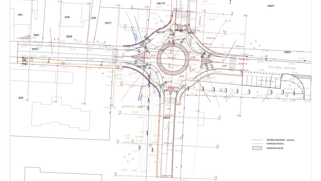Ovaj infrastrukturni zahvat obuhvaća izgradnju modernog kružnog raskrižja s vanjskim polumjerom prstena od 15 metara, a kako bi se dobilo šire područje za realizaciju projekta, prvo je trebalo riješiti imovinsko-pravne odnose. Planira se i rekonstrukcija javne rasvjete prema suvremenim standardima, izgradnja pješačke komunikacije s obje strane prometnice, kao i izgradnja oborinskog kolektora za odvodnju površinskih voda.