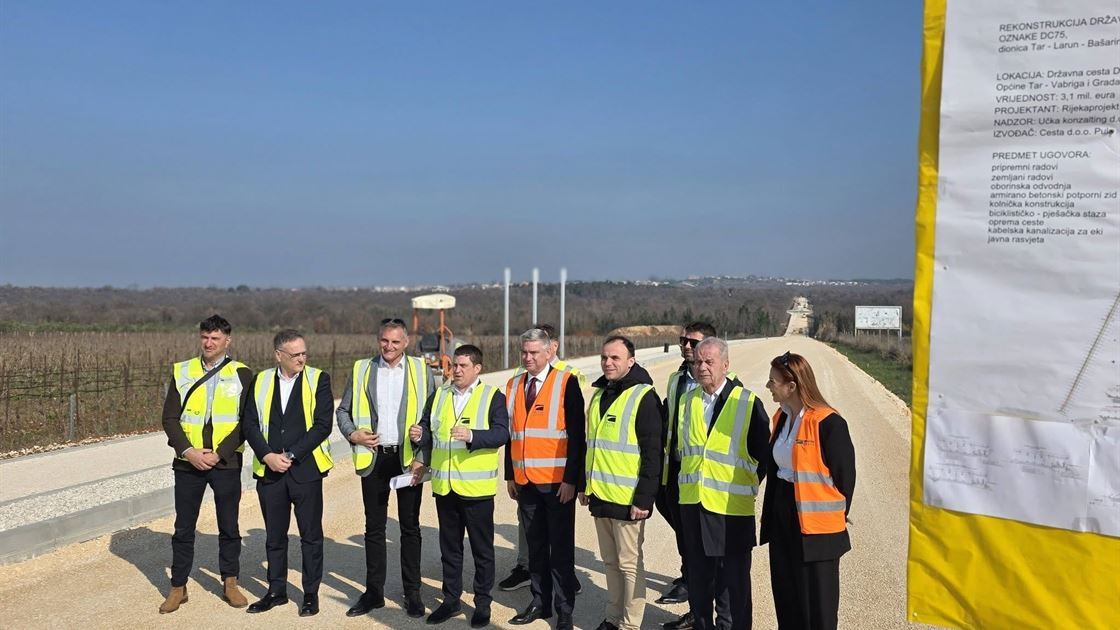 Potpredsjednik Vlade Republike Hrvatske i ministar mora, prometa i infrastrukture Oleg Butković boravio je danas u Poreču, gdje je u pratnji porečkog gradonačelnika Lorisa Peršurića, istarskog župana Borisa Miletića, saborskog zastupnika Antona Klimana, direktora Hrvatskih cesta Ivice Budimira te drugih obišao radove na rekonstrukciji državne ceste DC75 na dionici Tar – Larun – Bašarinka. Riječ je o investiciji Hrvatskih cesta, vrijednoj 3,1 milijun eura, kojom se unapređuje jedna od ključnih prometnica koja povezuje naselja Poreštine i šire područje zapadne Istre. Prema najavama izvođača, dovršetak radova i otvaranje dionice očekuje se do početka lipnja, zajedno sa svom pratećom infrastrukturom i biciklističkom stazom.