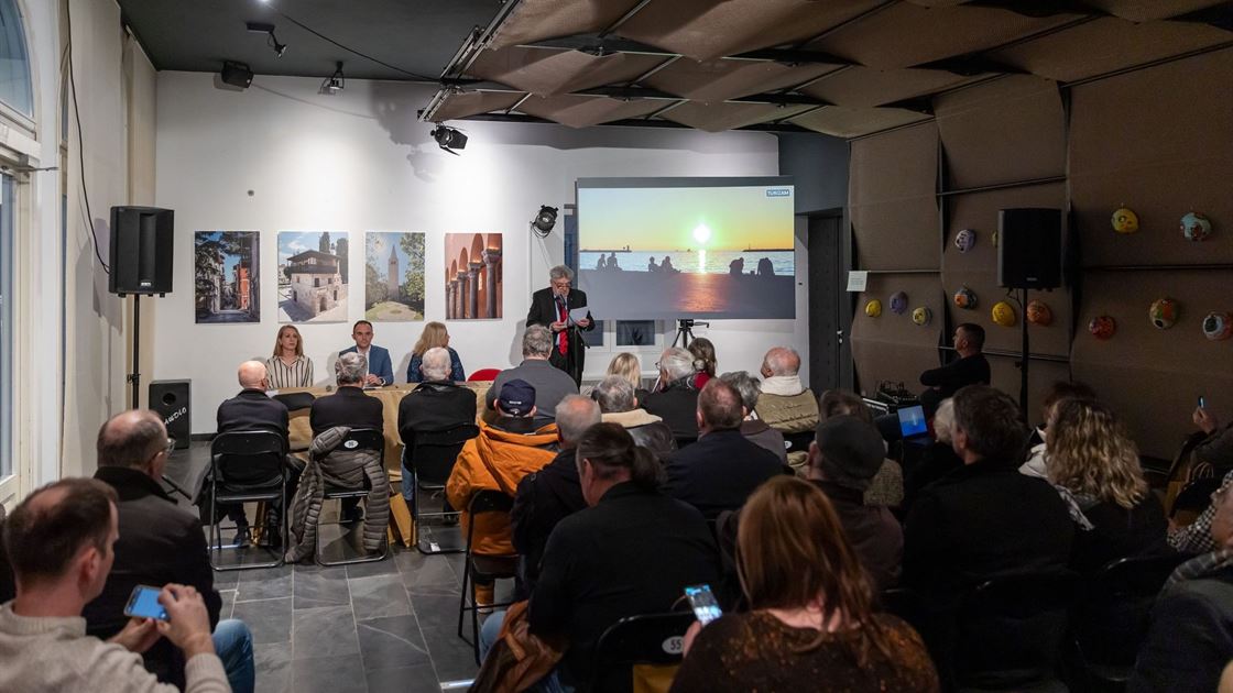 U foajeu kazališta Pučkog otvorenog učilišta predstavljena je sinoć (24.02.2025.) fotomonografija Poreč – Parenzo – „Putovanje kroz vrijeme“ / „Viaggio nel tempo“ u nakladništvu Quimedije d.o.o. i sunakladništvu Turističke zajednice grada Poreča, Plave lagune d.d. i Valamara Riviere d.d.