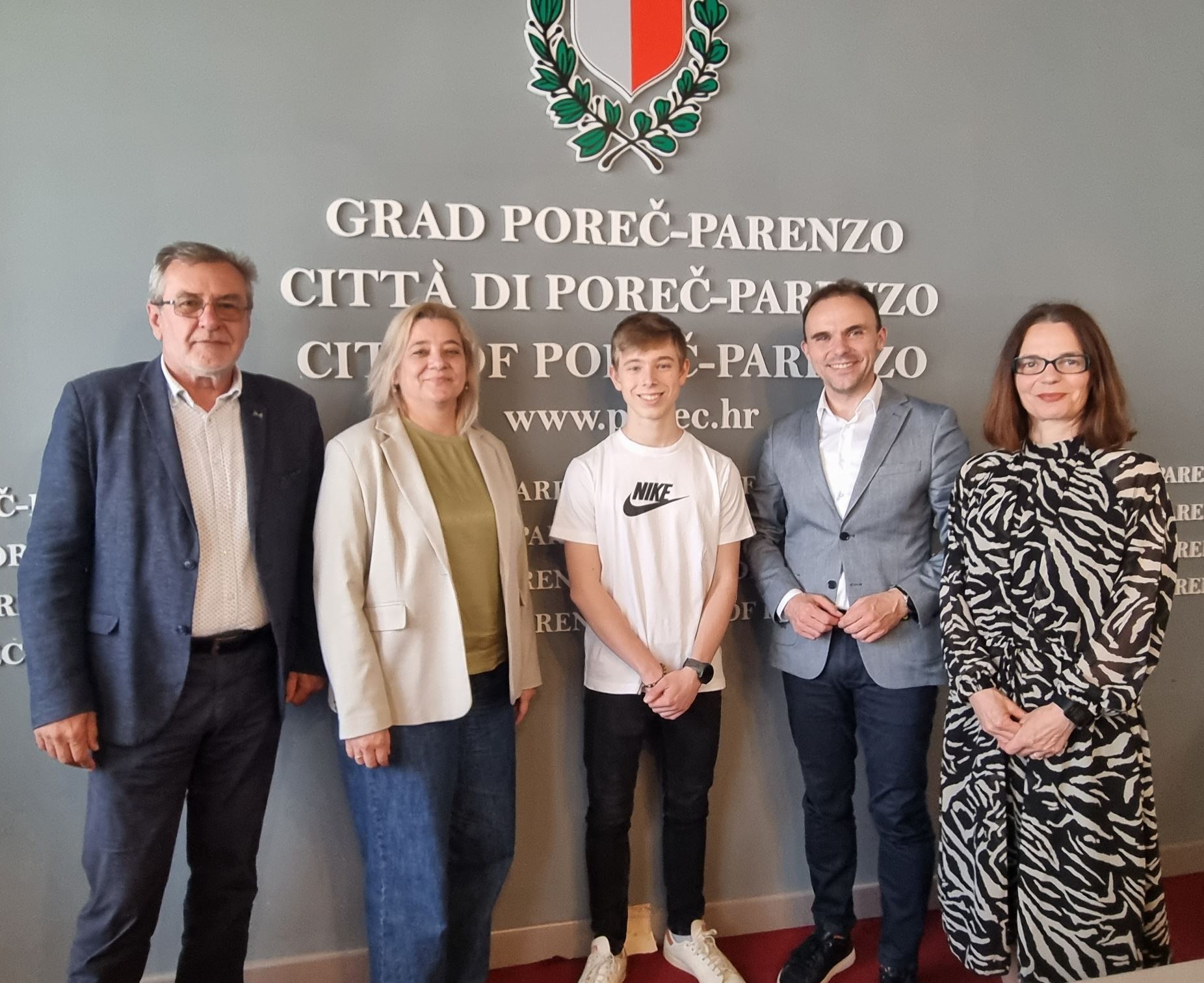 Gradonačelnik Loris Peršurić primio je u Maloj gradskoj vijećnici Petra Brajkovića, učenika 1. razreda opće gimnazije Srednje škole Mate Balote, koji se nedavno sa državnih natjecanja vratio okrunjen vrijednim nagradama i ostvario za svoju školu izuzetne uspjehe.