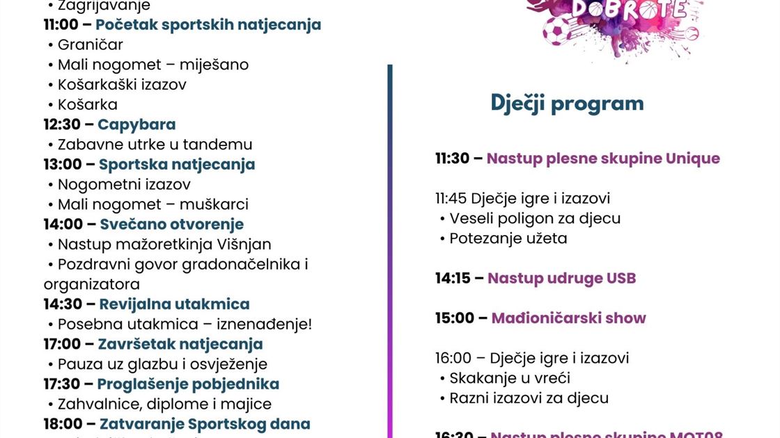 Organizatorice pozivaju sve da dođu, igraju, zabavljaju se i budu dio dana u kojem se kroz sport, druženje i veselje čine dobra djela, jer ponekad je za veliko dobro dovoljno malo – jedan osmijeh, jedna igra, jedna ispružena ruka.