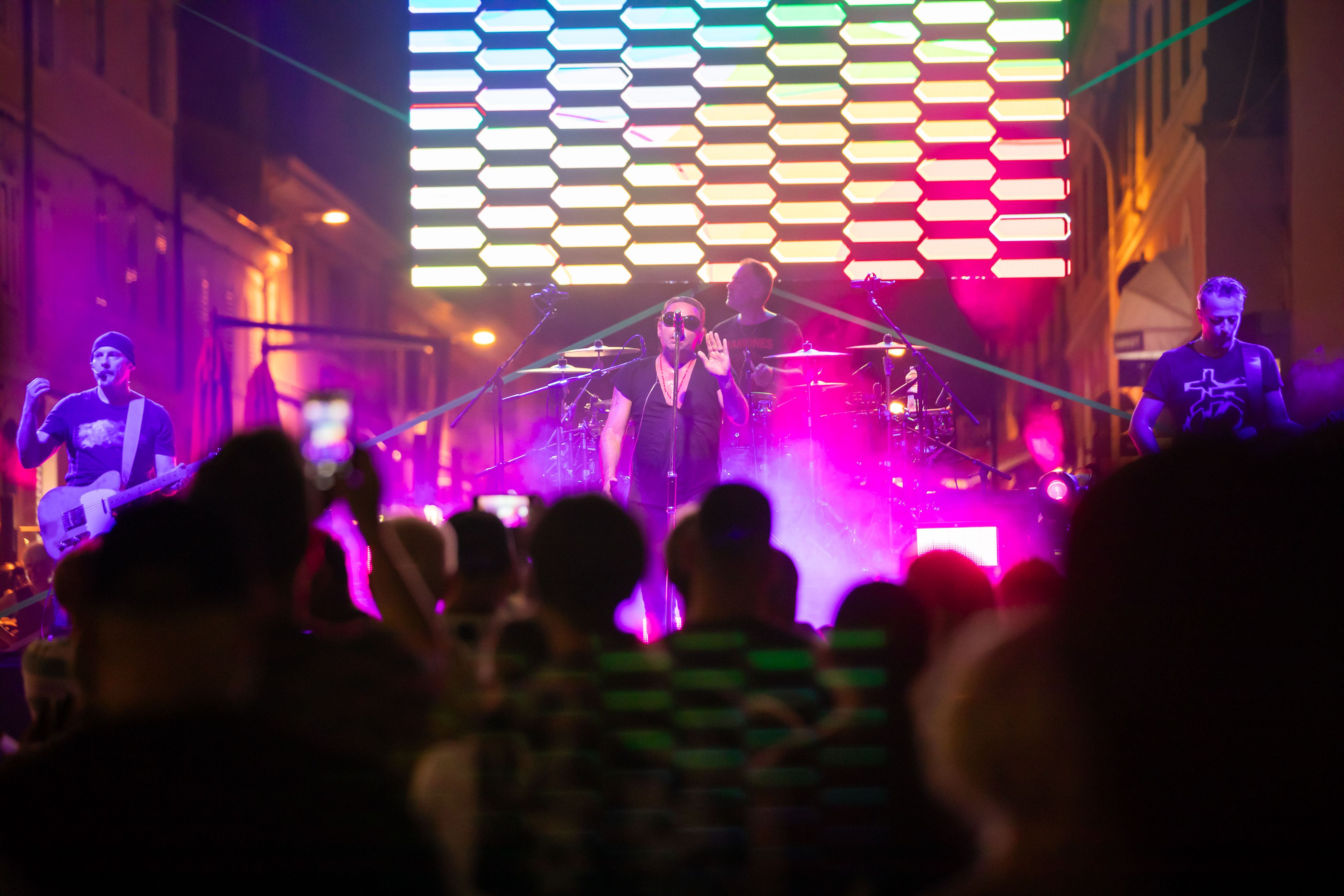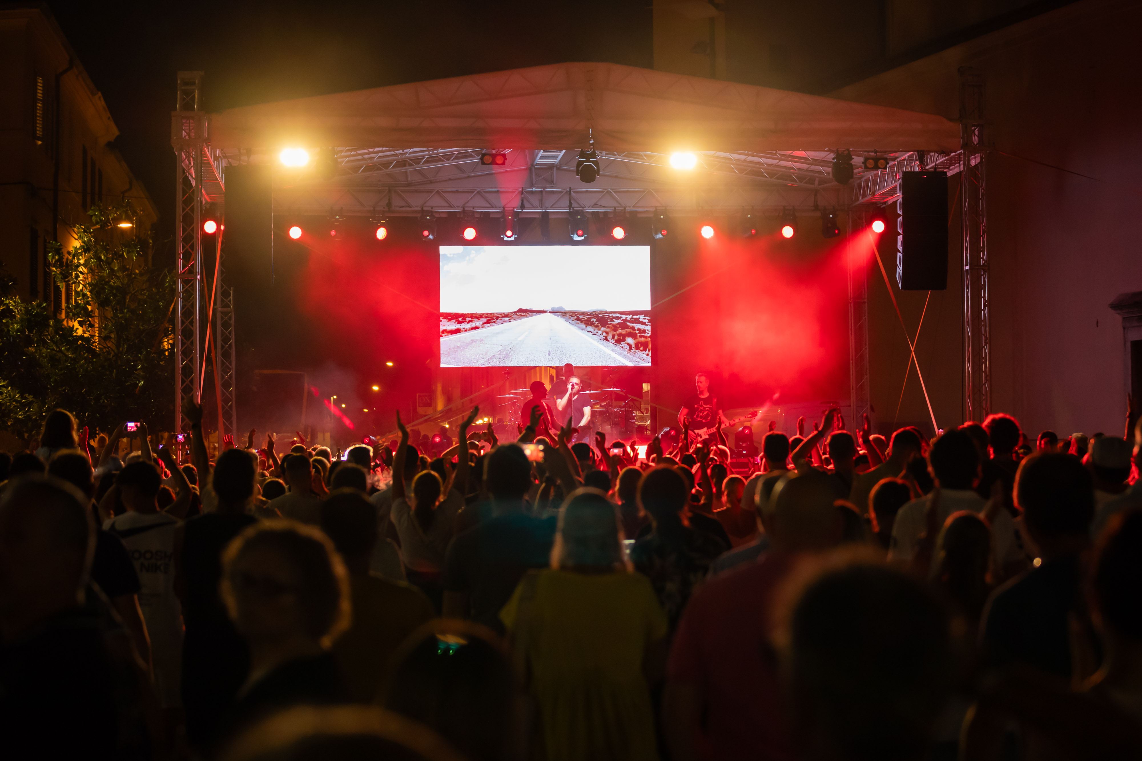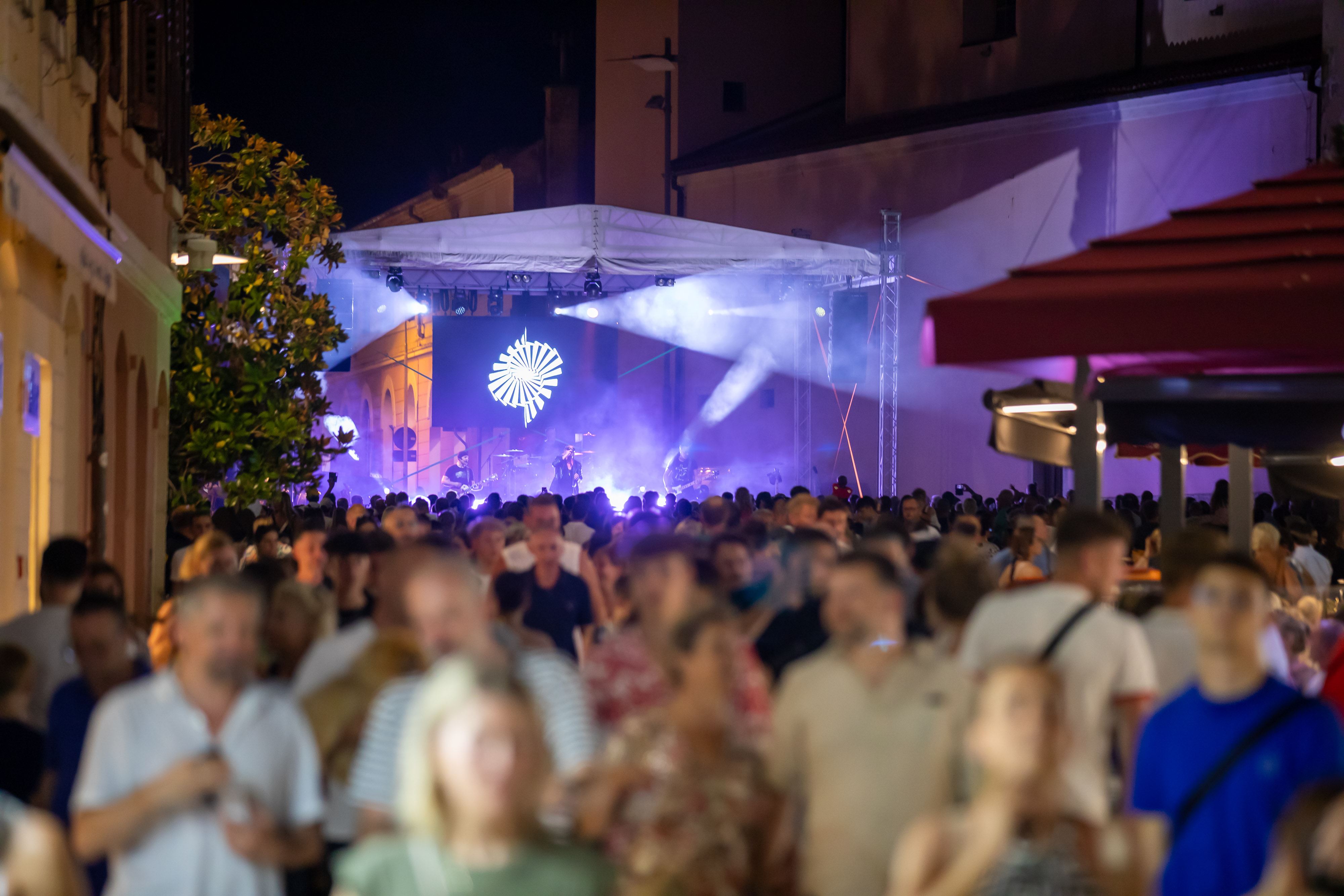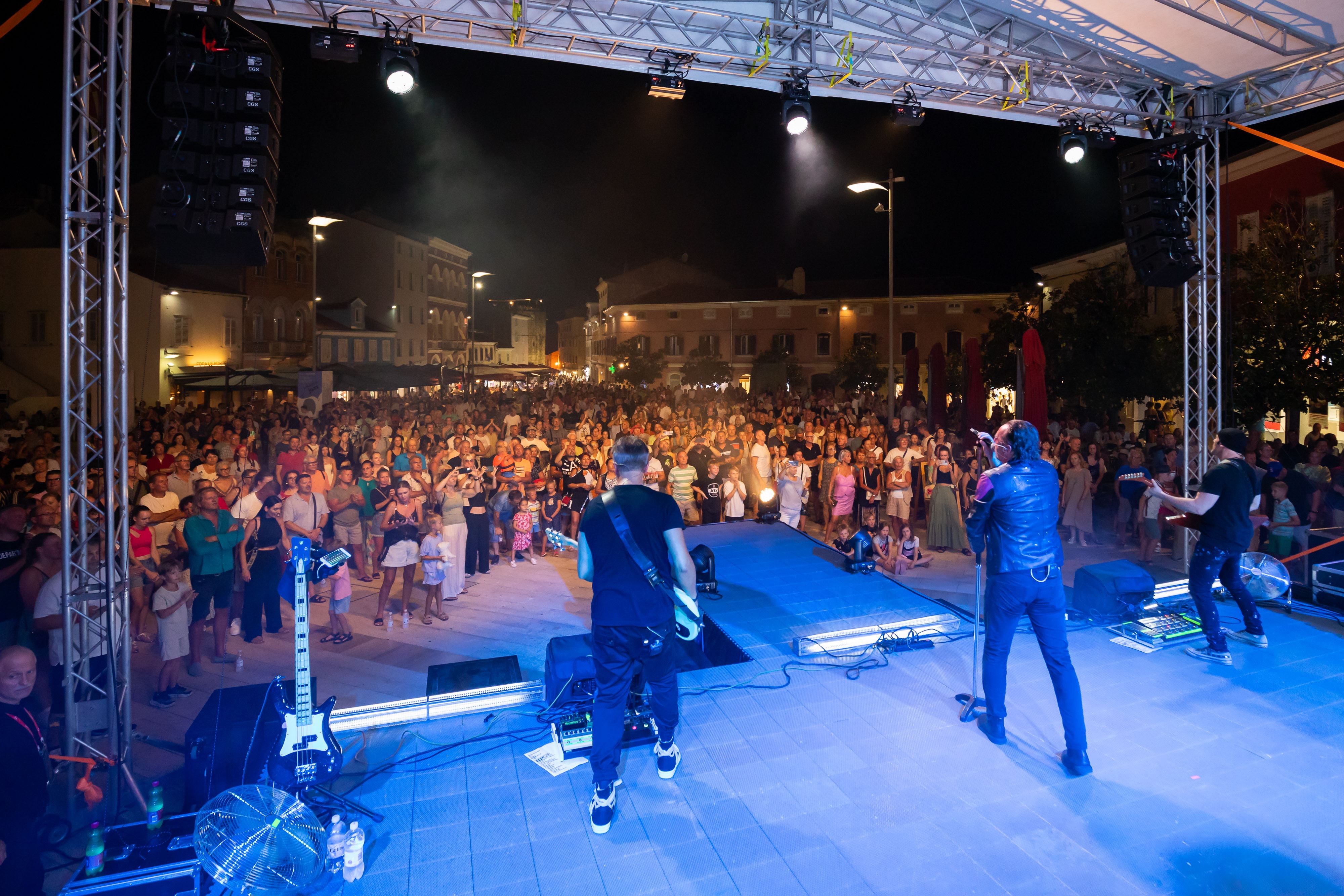 Velvet Dress je izveo najveće hitove poput "Sunday Bloody Sunday", "One", "Beautiful Day", "I Still Haven't Found What I'm Looking For", "Where the Streets Have No Name", prenoseći autentičnu energiju i emociju koja prati U2-ovu glazbu. Poseban trenutak večeri bio je kada je bend izveo pjesmu "With or Without You", tijekom koje su se upalila svjetla mobilnih telefona diljem trga, stvarajući magičnu atmosferu. Svaka pjesma bila je izvedena s nevjerojatnom preciznošću i osjećajem, a članovi benda su svojim nastupom pokazali zašto su prepoznati kao najbolji U2 tribute band u regiji. Bila je to još jedna nezaboravna večer Porečkog ljeta.
