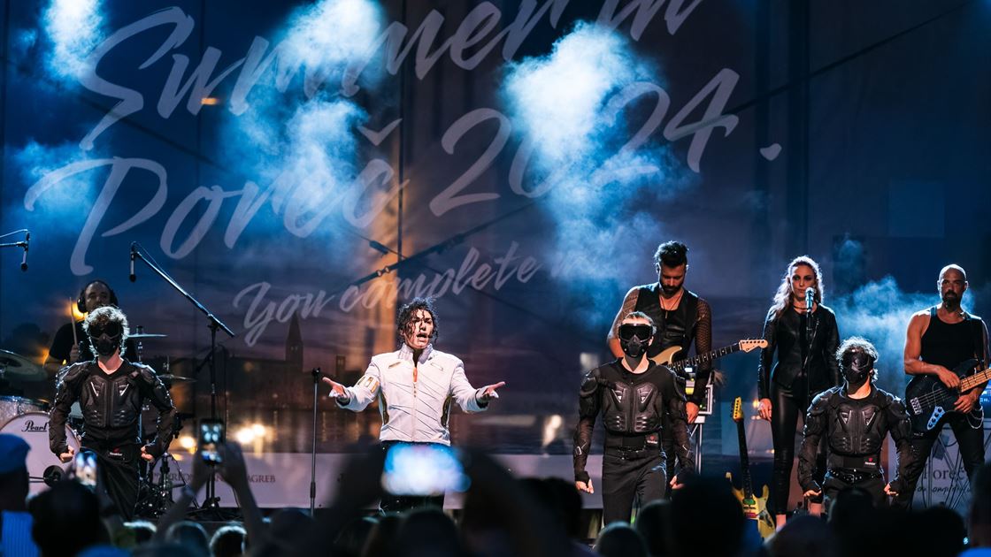 U sklopu Porečkog ljeta, sinoć je na prepunom Trgu slobode u Poreču održan spektakularan show JACKSON ONE: Tribute Michael Jackson koji je vratio na scenu glazbu i vizualne efekte Kralja popa. Više od običnog tribute benda, Jackson One je projekt koji odaje počast ikoni koja je zauvijek obilježila povijest moderne glazbe.