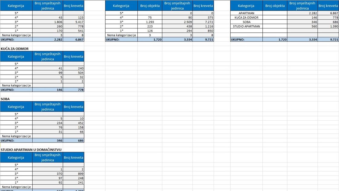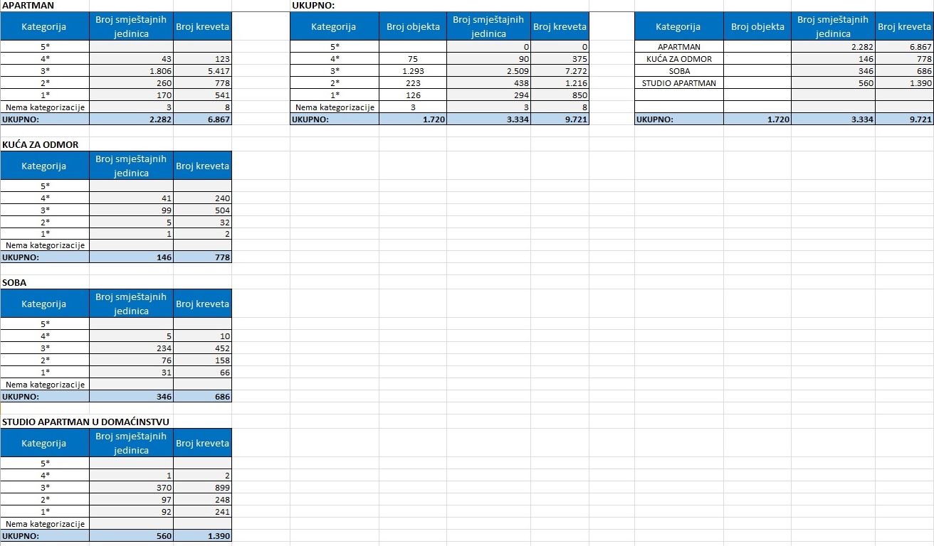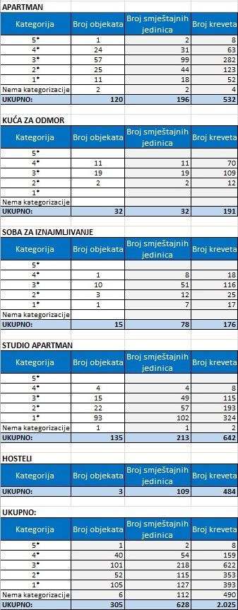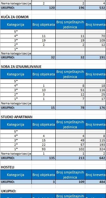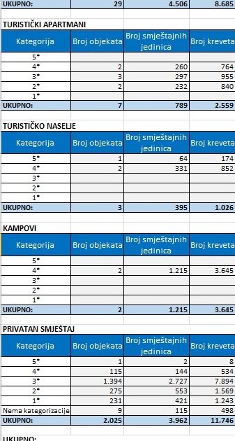 Tablica 1. Statistički podaci po smještajnim objektima za 2016. godinu.