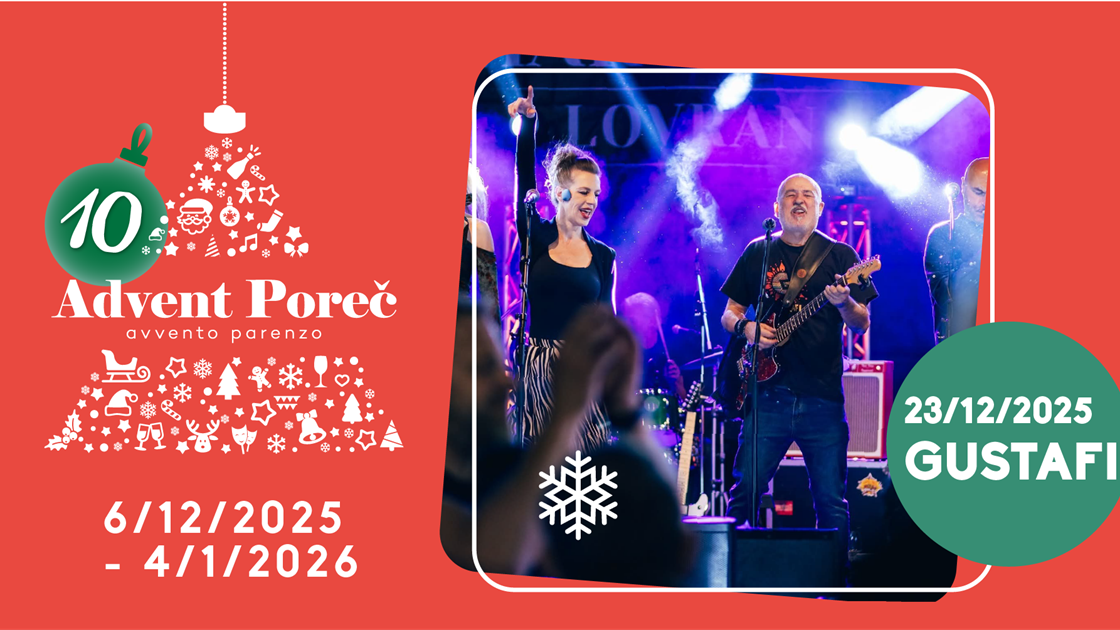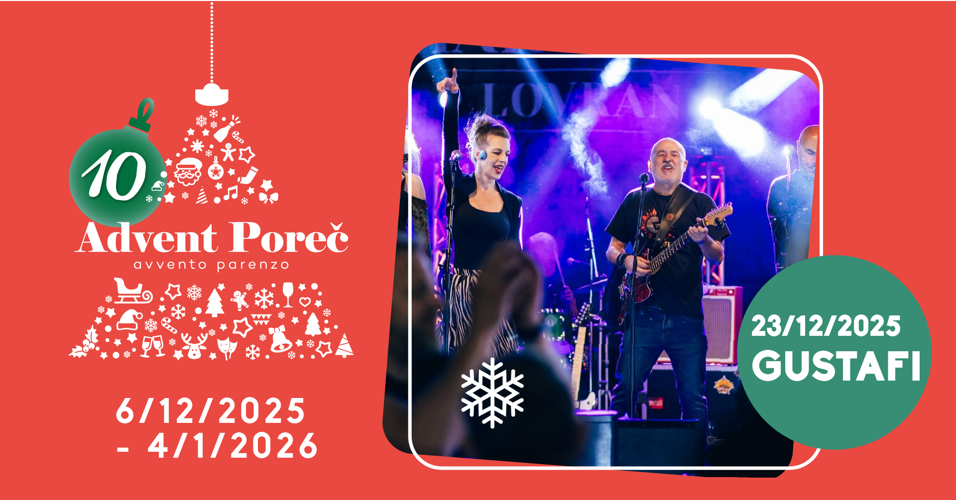 Martedì 23 dicembre il programma prosegue con i concerti della Hit Revival Band e dei Gustafi, ospiti tradizionali dell’Avvento Parenzo, che quest’anno celebrano il loro 45º anniversario. L’inizio è previsto per le 19:00.