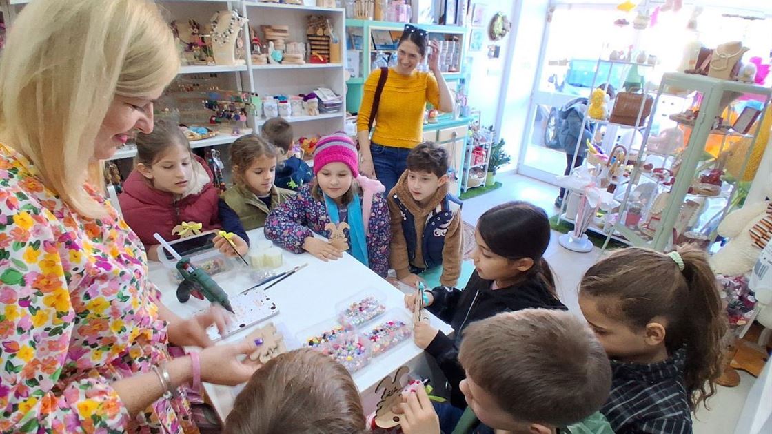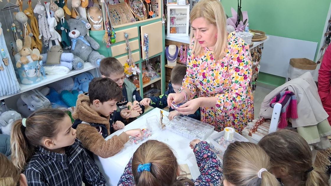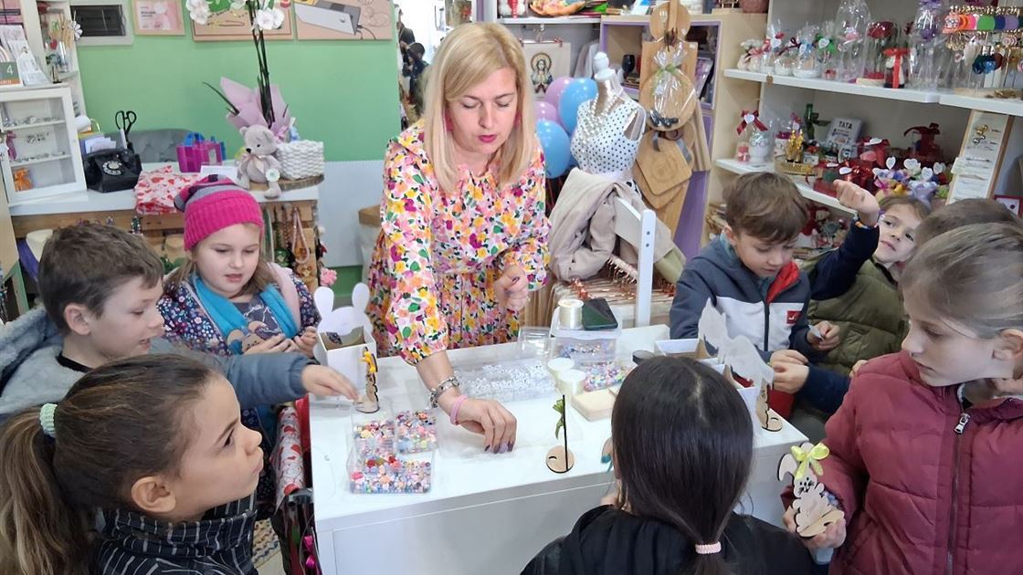 Durante la visita, i bambini si sono cimentati nella creazione di braccialetti personalizzati, decorati con perline e i loro nomi. Per premiarli e stimolare la loro fantasia, Marijana ha consegnato loro delle medaglie con la scritta "miglior persona creativa", incoraggiandoli a sviluppare il pensiero creativo e le abilità manuali. In vista della Pasqua, la proprietaria ha inoltre sorpreso gli alunni con un porta-uovo Kinder a forma di coniglio, personalizzato con i loro nomi.