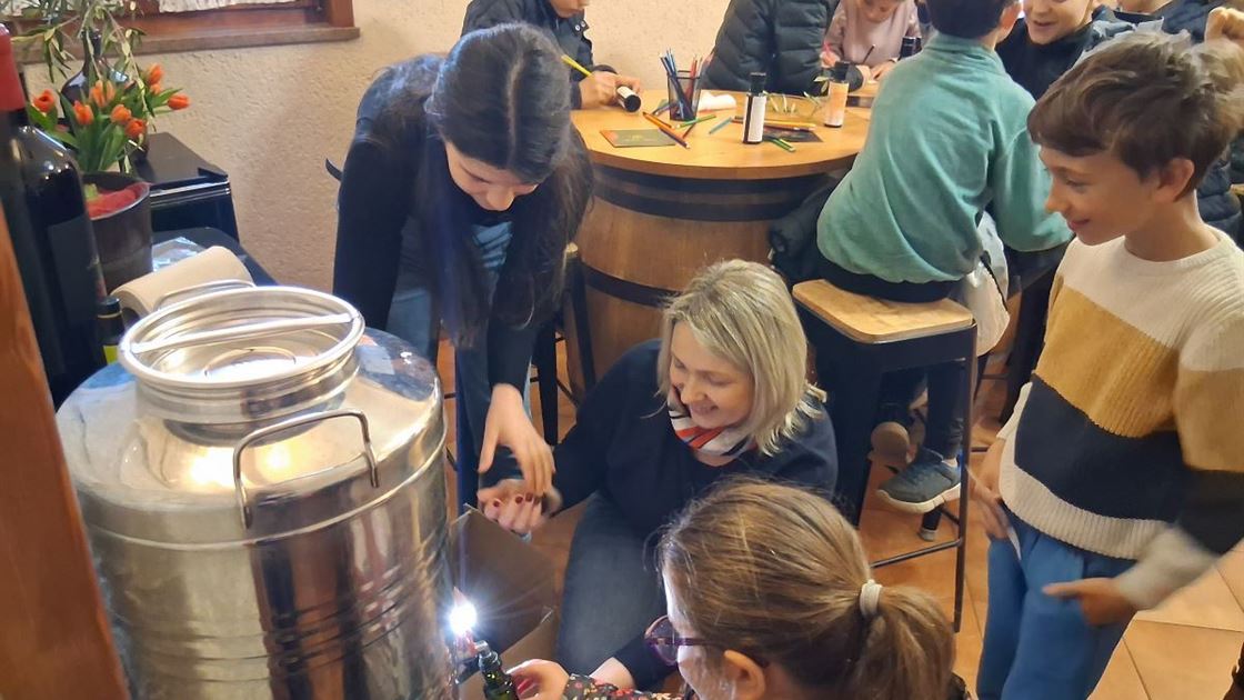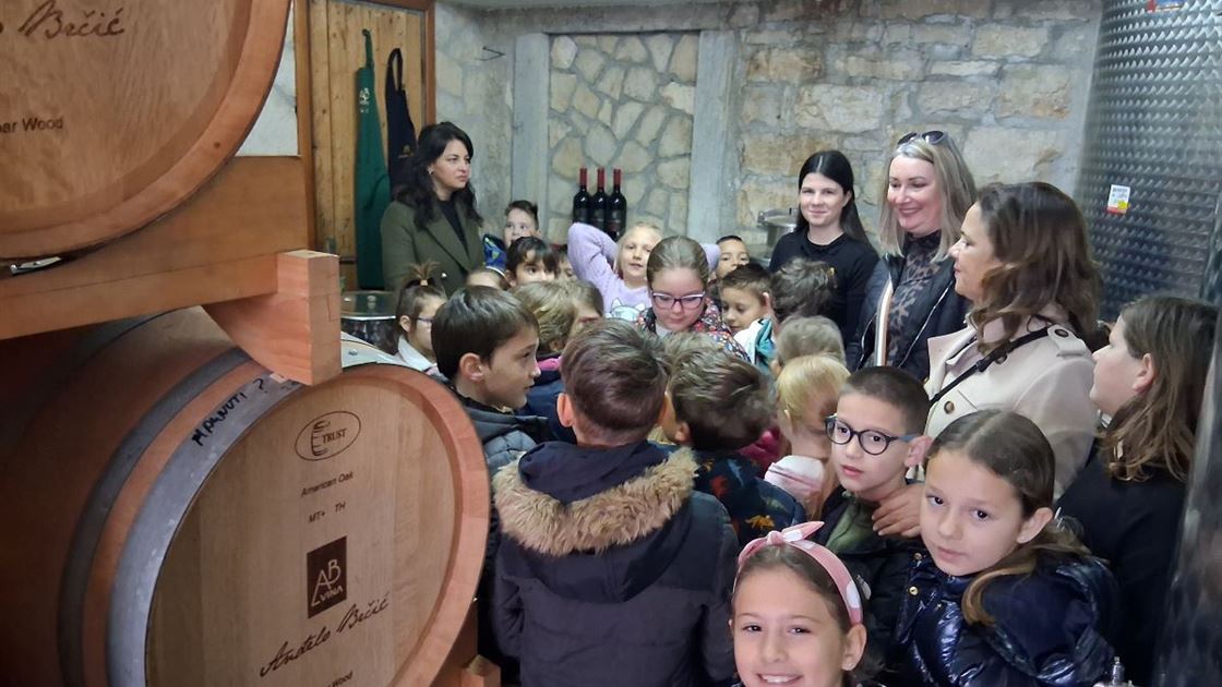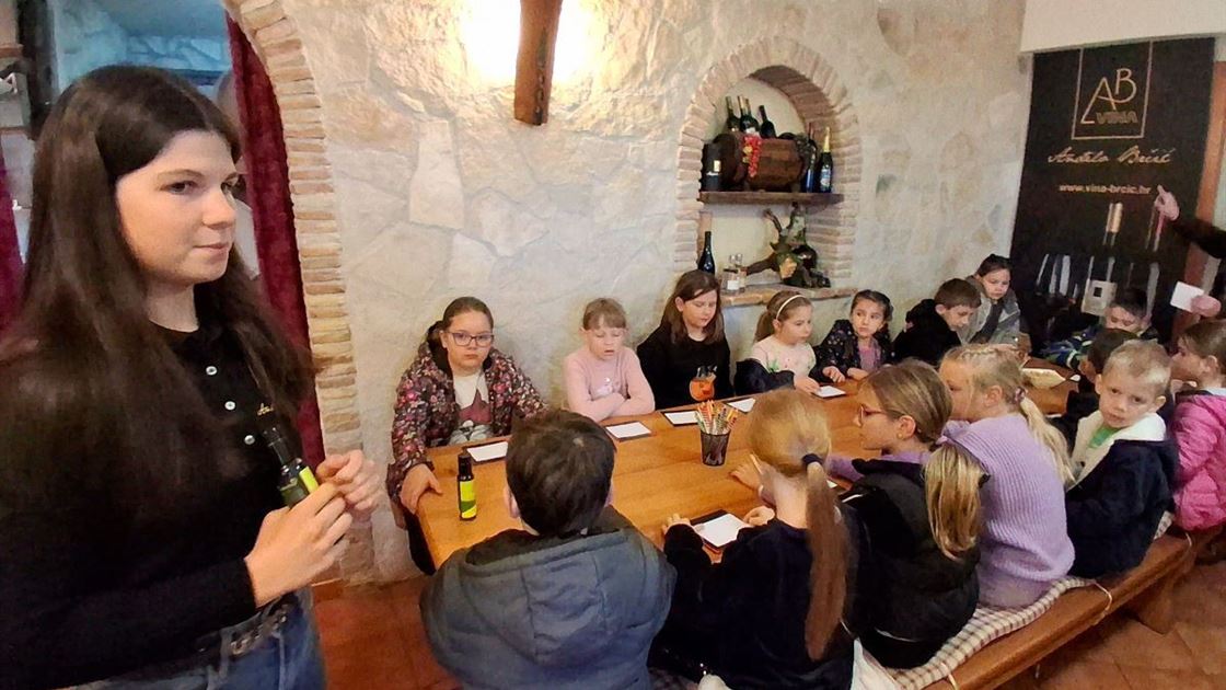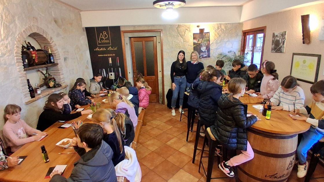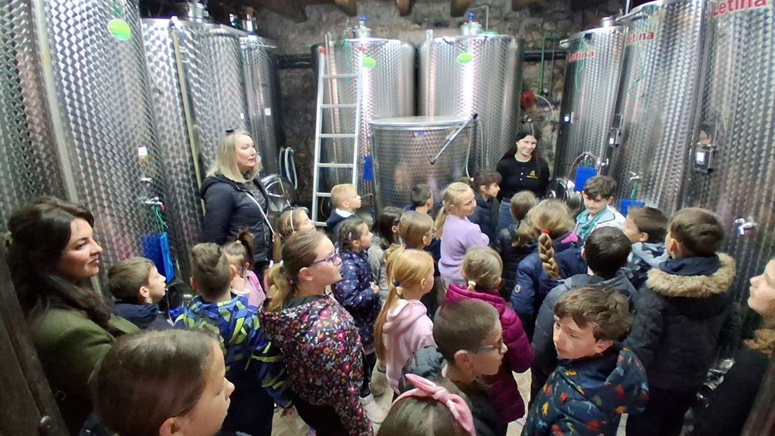 I membri dell'Azienda OPG Anđelo Brčić, la responsabile della cantina Ivana Matošević e Patricija Butković, hanno accolto gli alunni condividendo i segreti del loro lavoro. Hanno illustrato ogni fase del processo produttivo del vino: dalla cura delle viti, alla vendemmia, passando per la pigiatura, la fermentazione, fino alla commercializzazione del prodotto finale. Gli alunni hanno scoperto come il mosto, grazie al lievito, si trasformi in vino attraverso un affascinante processo chimico.