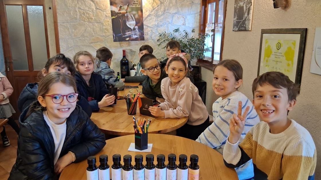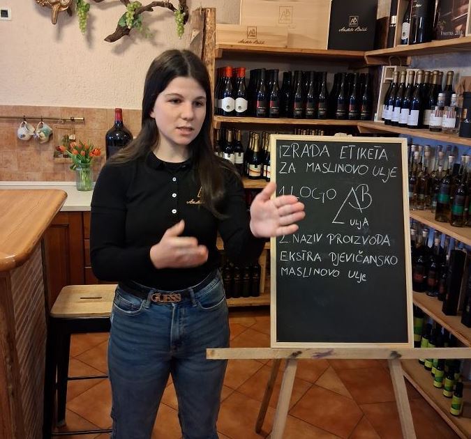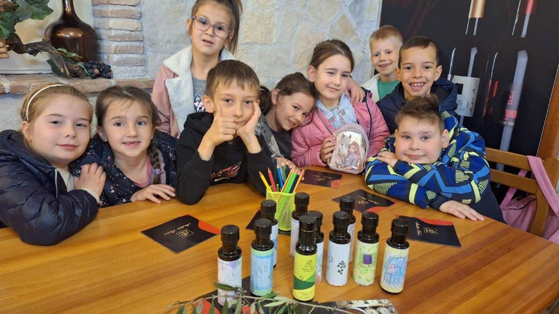 Mese dell'imprenditorialità a Parenzo: gli alunni realizzano etichette personalizzate per l'olio d'oliva dell'azienda a conduzione familiare OPG Brčić a Villanova