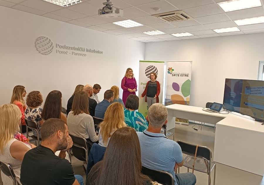 È stata un'occasione per la promozione, scambio di esperienze e instaurazione di collaborazioni. Il progetto è stato presentato da Petra Pekica, direttrice dell'Agenzia per lo sviluppo “Srce Istre” (“Cuore dell'Istria”). Successivamente la direttrice dell'Incubatore d'impresa di Parenzo, Morena Mičetić, ha presentato il ruolo che l'Incubatore di Parenzo nello sviluppo dell'imprenditoria nell'area di Parenzo e del parentino, come è stato creato e come avviene l'ingresso e il lavoro degli "inquilini". Sono seguite le presentazioni degli inquilini. Vedrana Jehnić (VERDI, studio contabile), Karmen Kalčić (HISTRIA CAPITAL D.O.O.), Sandi Legović (REVOLTE D.O.O.), Vedran Jambrešić e Kristijan Benić (MATRIX REAL ESTATE D.O.O.) hanno presentato le loro attività e la visione per l'ulteriore sviluppo dell'incubatore d'impresa di Parenzo.