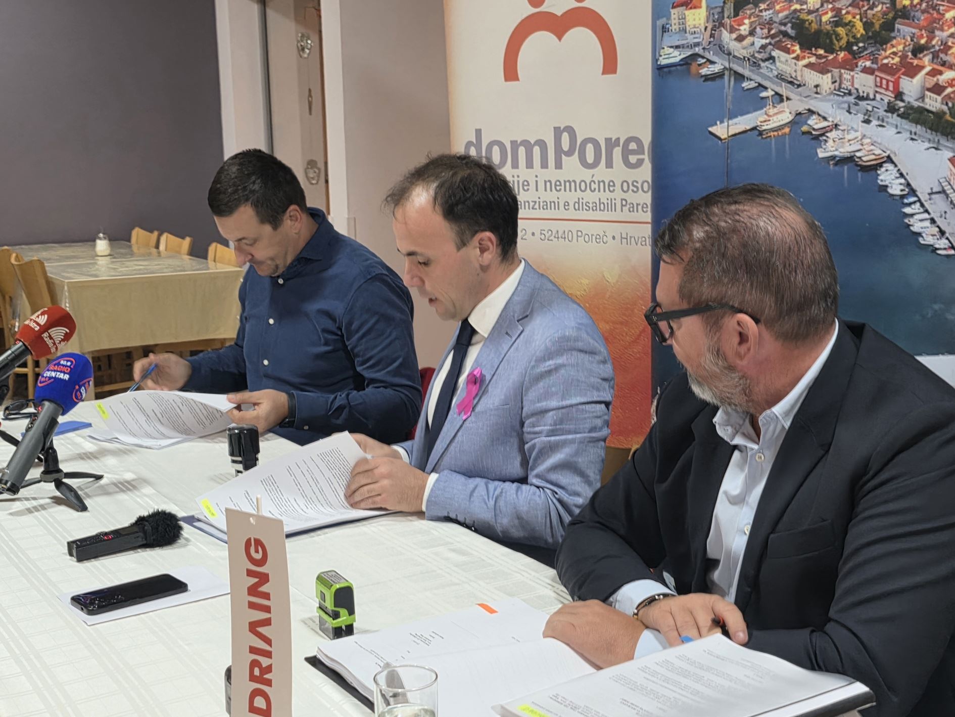 Alla cerimonia della firma hanno partecipato numerosi rappresentanti istituzionali e partner del progetto: la vicesindaca Nataša Basanić Čuš, anche direttrice di lunga data della Città Sana di Parenzo, gli assessori Tihana Mikulčić (Attività Sociali), Damir Hrvatin (Pianificazione Territoriale) e Darko Saftić (Amministrazione Generale). Presenti anche la direttrice della Casa Sandra Ćakić Kuhar, la direttrice della Città Sana Sandra Milotti Ašpan, il presidente del Consiglio di Amministrazione Franc Dobrilović e la consigliera del Partito Istriano dei Pensionati Marija Maras.