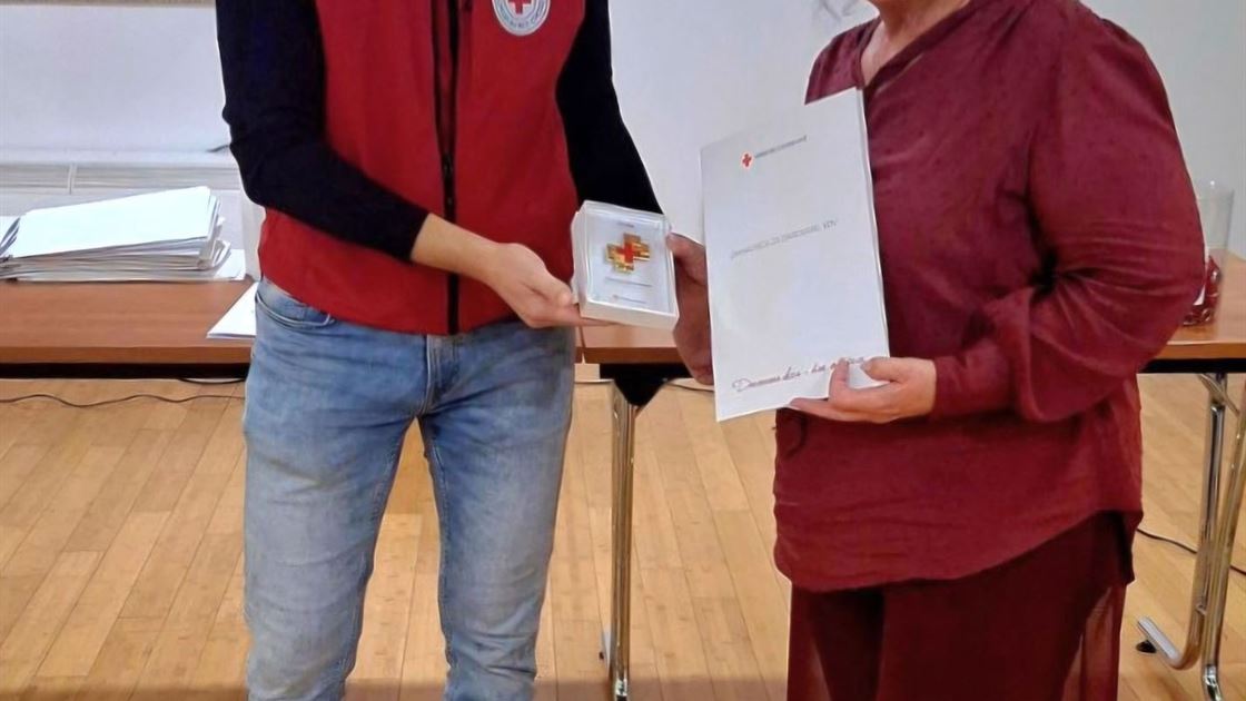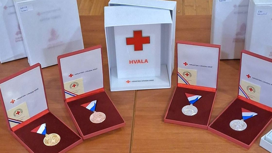 Durante il ricevimento sono stati consegnati i riconoscimenti della Società cittadina della Croce Rossa di Parenzo ai donatori che hanno donato il sangue 10, 20, 30, 40, 50, 75 e 100 volte (uomini), e 5, 10, 20, 25, 35, 55, 75 e 95 volte (donne).