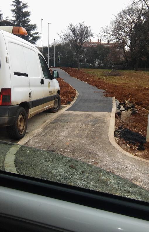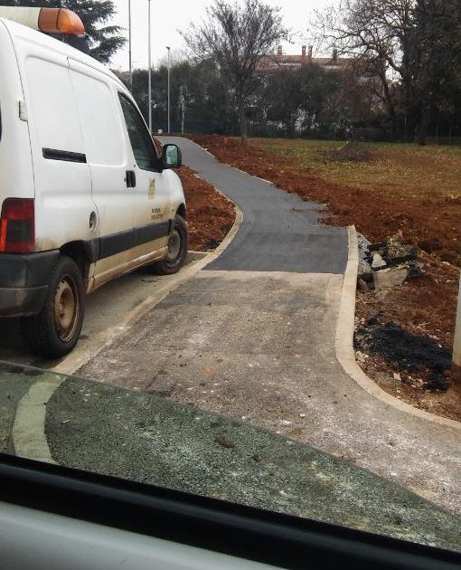 Također, asfaltirana je i pješačka staza između ulice Rajka Stipe i uzdignutog pješačkog otoka na državnoj cesti D75 prema Pazinskoj ulici. Ovih dana radi se na uređenju zelenih površina uz stazu.