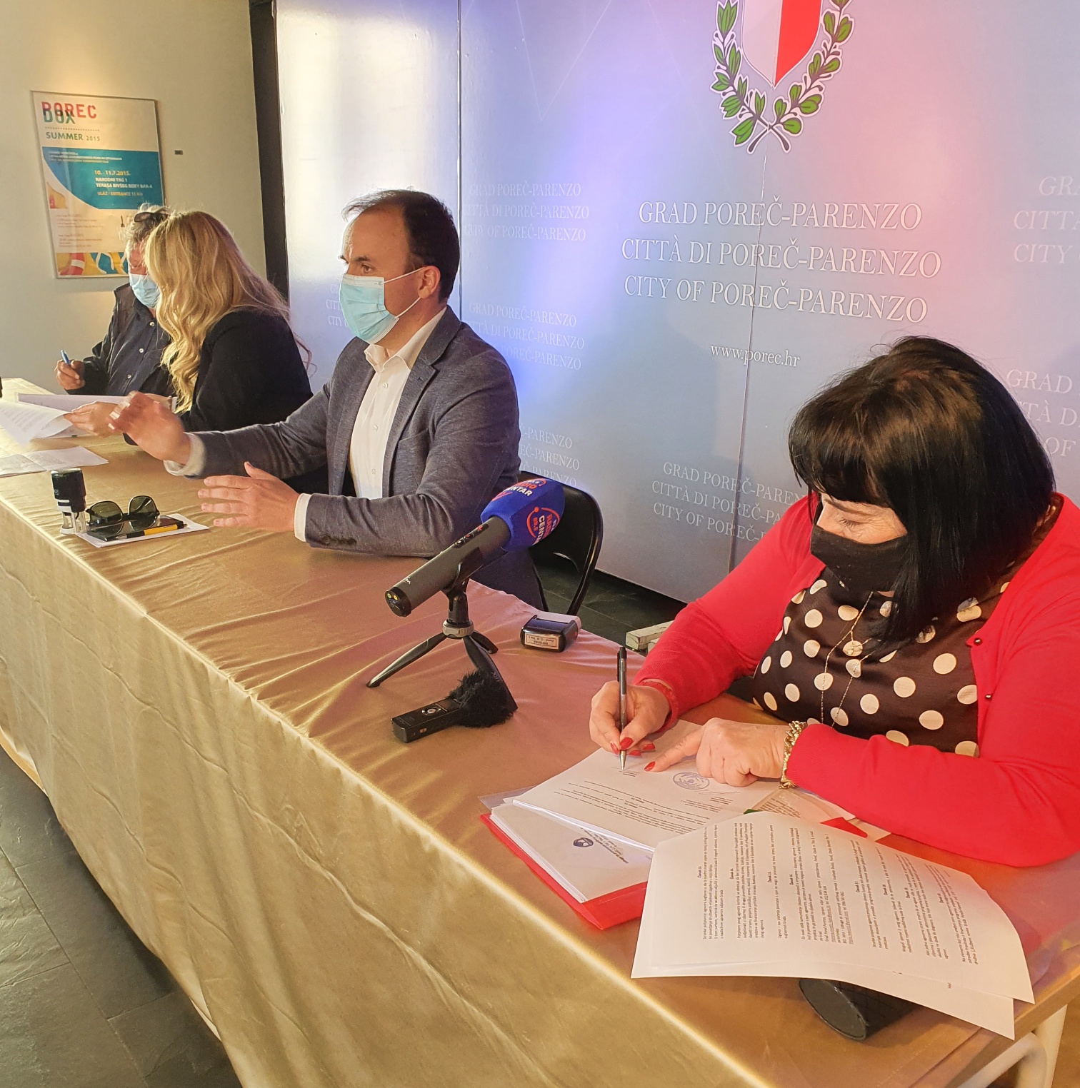 Poreč, 20.03.2021. U petak je u Poreču održana je prigodna svečanost potpisivanja Ugovora o dodjeli financijskih sredstava iz Proračuna Grada Poreča-Parenzo programima i projektima organizacija civilnog društva koje djeluju u području poljoprivrede. Grad Poreč-Parenzo je, kao i posljednje dvije godine, natječaj proveo u suradnji sa Zakladom za poticanje partnerstva i razvoj civilnog društva. Ukupno je 150.000,00 kuna dodijeljeno je udrugama Bioistra i AGROPOREČ za redovni rad udruge i projekt Eko! Impjantajmo ružmarin.