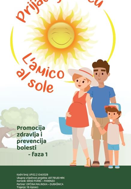 Kako je napomenula Babić, Grad Poreč-Parenzo je kao nositelj projekta proveo postupak javne nabave i ugovorio je izvršitelja zdravstvenih usluga - Specijalnu bolnicu Medico, s kojom će u dječjim vrtićima provesti edukativne radionice za djecu s ciljem prevencije malignih bolesti kože, zatim predavanje za roditelje predškolske djece, jedan seminar za opću javnost, javnim događanjem obilježiti Svjetski dan sunca te uspostaviti savjetovalište za prevenciju malignih bolesti kože Grada Poreča. - Sve su to aktivnosti koje će biti dostupne našim građanima potpuno besplatno, a vodili smo računa o tome da se savjetovališta održavaju u nekoliko navrata, u svih 10 porečkih mjesnih odbora., zaključila je Babić.