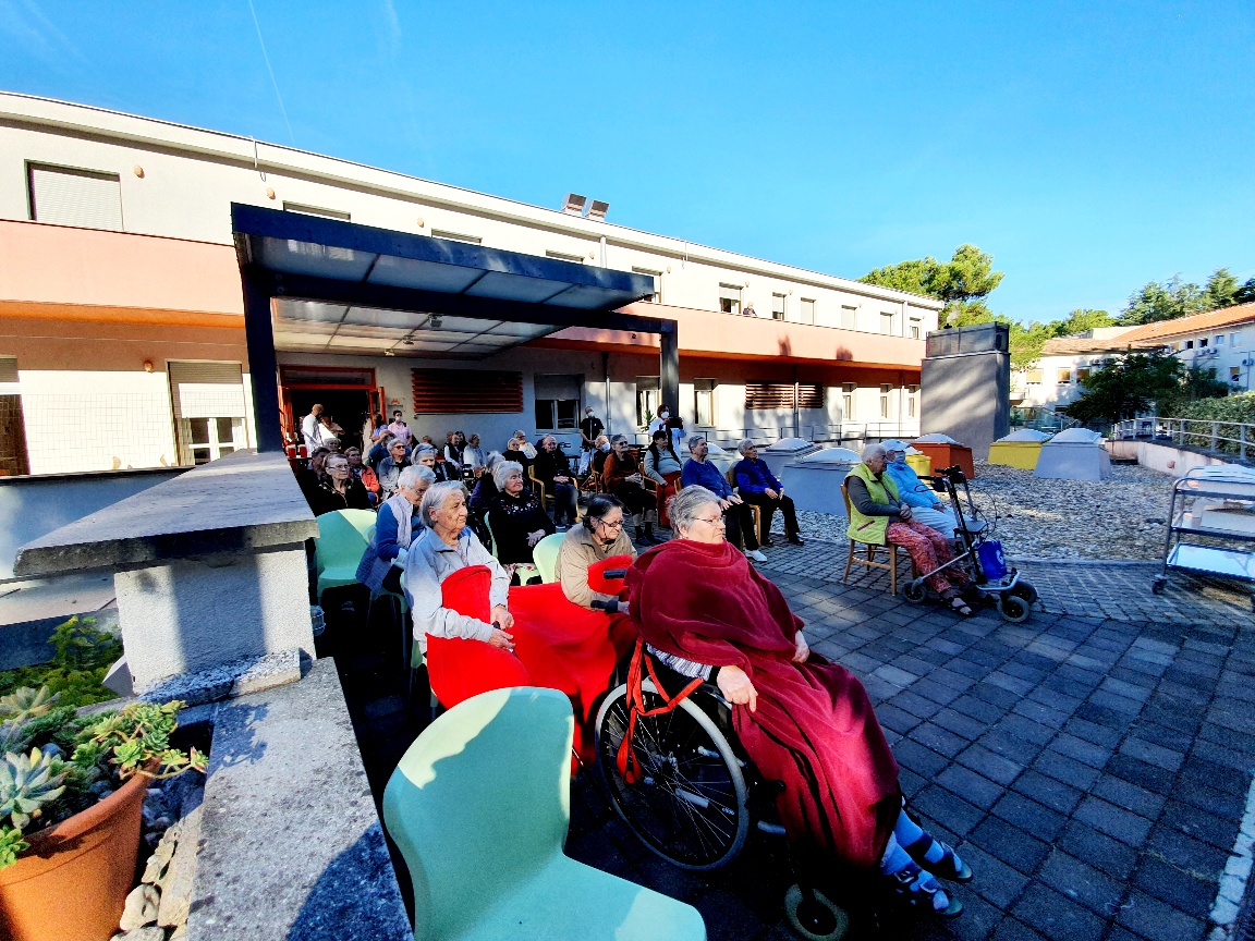 Dobrodošlicu gostima na prigodnoj svečanosti u dvorištu doma, zajedno s korisnicima, zaželjela je ravnateljica Doma Tihana Mikulčić i djelatnici. Mikulčić je podsjetila kako Dom ove godine obilježava i 14 godina od otvorenja, a cijelo to vrijeme uživa stalnu podršku Grada kroz sufinanciranje smještaja svih korisnika u iznosu od 55%, ali i ostalih programa poput medicinske rekreacije, posudbe medicinskih pomagala, hospicija (skrbi u kući) i ostalih aktivnosti.
