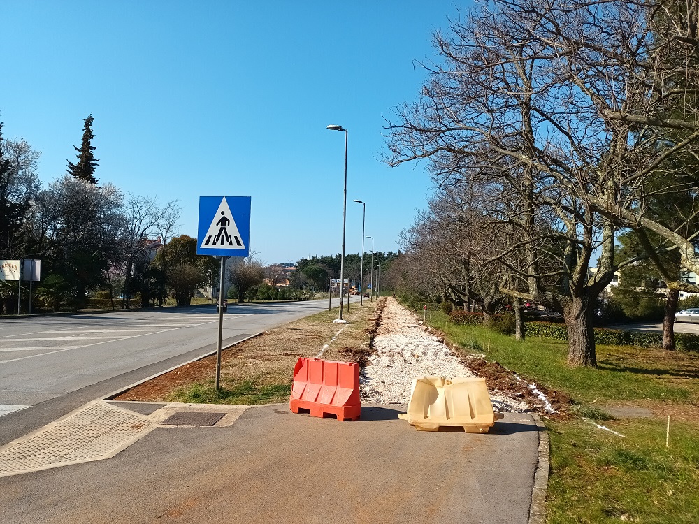 Upravni odjel za komunalni sustav Grada Poreča-Parenzo nastavlja s radovima na izgradnji pješačko-biciklističke stazi kod bivšeg hotela Zagreb. Nova prometna komunikacija sastojat će se od pješačke staze širine 1,50 metara i biciklističke staze širine 2 metra, a ukupna duzina staze iznosit će 526 metara. Na taj će se način građanima i rekreativcima omogućiti sigurnije mjesto za kretanje. Završetak radova planiran je do uskrsnih blagdana.