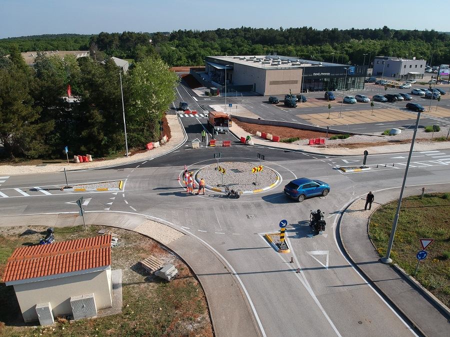 Per questo motivo la Città di Poreč-Parenzo ha avviato la realizzazione della suddetta rotatoria prefabbricata, che alla fine farà parte di ulteriori soluzioni di traffico per il futuro ampliamento di questa zona commerciale. Come già accennato, in autunno, con la realizzazione di una rotatoria fissa di dimensioni maggiori, questa zona otterrà una completa comunicazione pedonale.