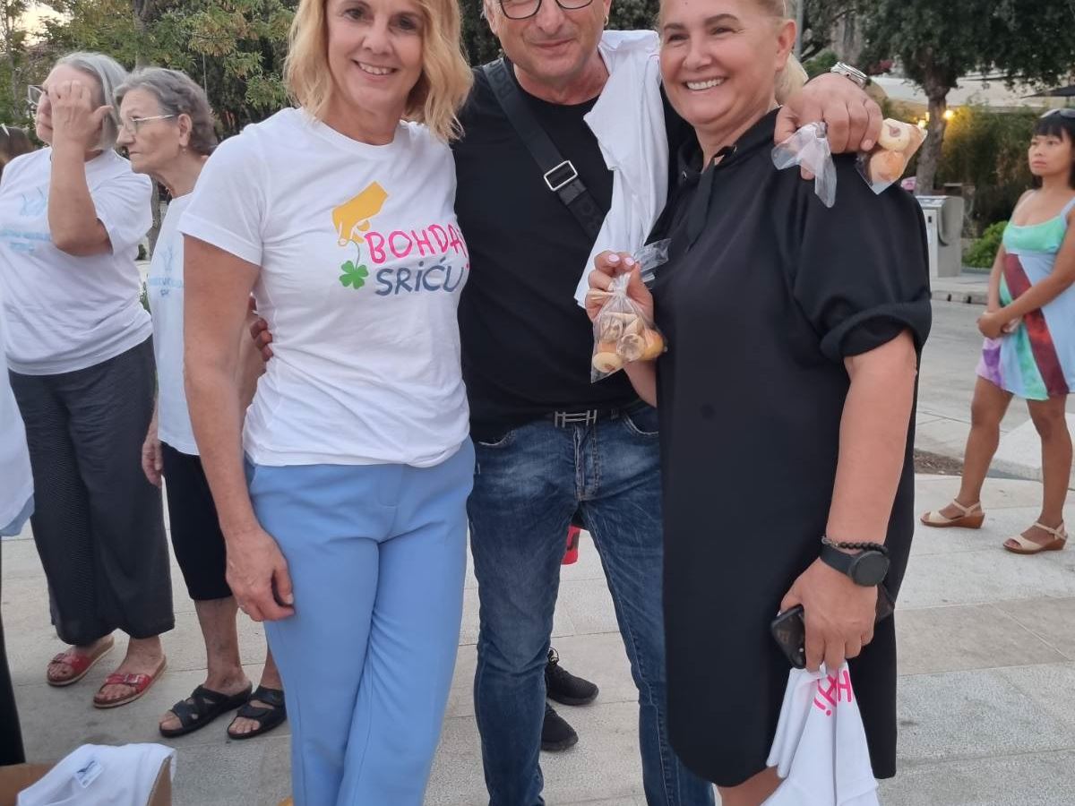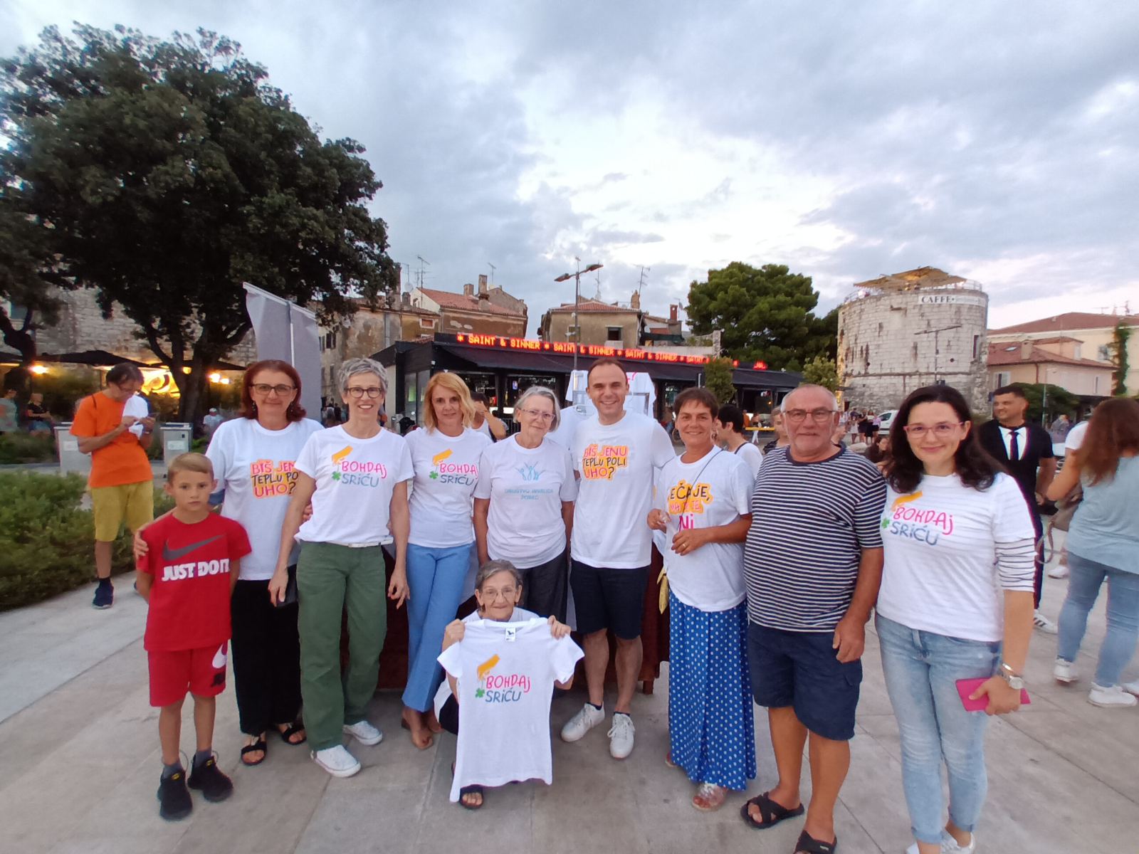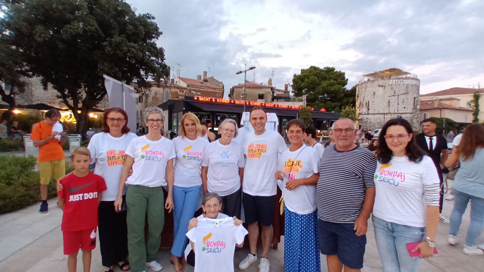 I presenti al concerto sono stati deliziati dalle t-shirt di TU I TAMO BAND con iscrizioni spiritose e umoristiche, così le magliette sono svanite in un istante alla bancherella dell’Associazione. I convenuti hanno contribuito alle donazioni per magliette, le torte e l’acqua, nonché per la torta celebrativa dalla BAND per tutti. Sono state raccolte un totale di 10.611,00 HRK da singoli visitatori e da due organizzazioni di Parenzo, i motociclisti di Villanova e dal ristoratore di Branko Čolakić di Parenzo. L'Associazione degli invalidi di Parenzo desidera ringraziare dal profondo del cuore tutti i donatori, sia i singoli che le organizzazioni. I fondi saranno utilizzati per completare gli ausili ortopedici dell’Associazione.