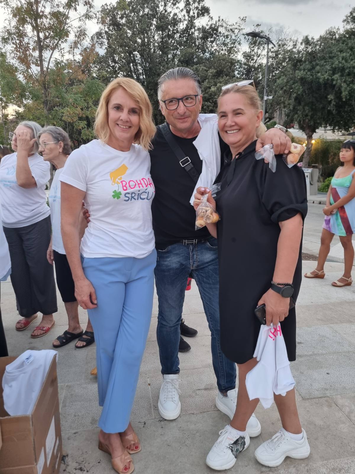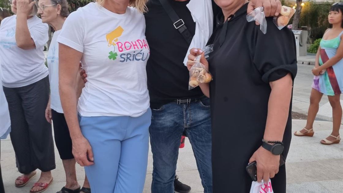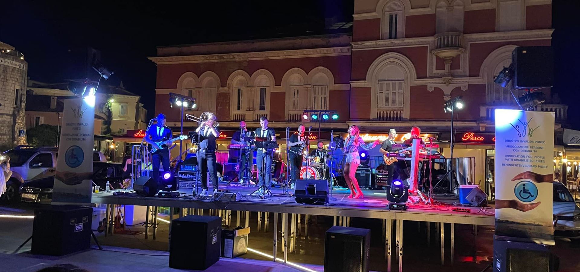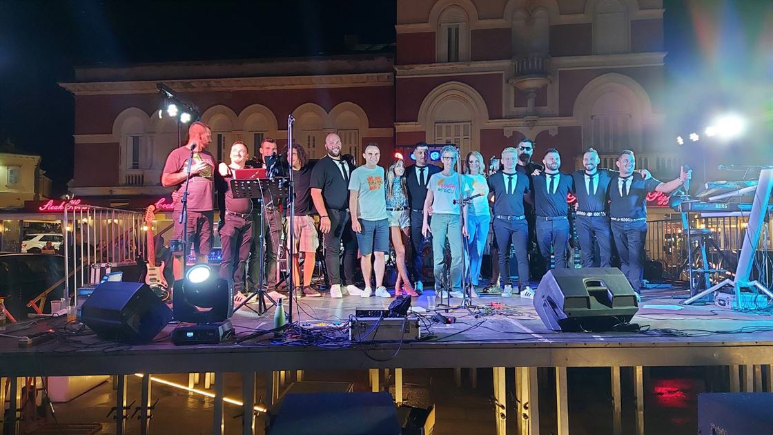 Parenzo, 26 agosto 2022.Ieri sera si è svolto il concerto di beneficenza della TU I TAMO BAND dedicato all’Associazione invalidi di Parenzo. In un’ottima atmosfera e la gioia del pubblico, dei musicisti, della presidente Nataša Basanić Čuš, della segretaria Sandra Brečevac e dei laboriosi volontari dell’Associazione di Parenzo. Per quasi tutta la serata, era presente il sindaco di Parenzo Loris Peršurić che ha sostenuto l'organizzazione di questo concerto di beneficenza, che indossava una divertente maglietta con la scritta Biš jenu teplu poli uho?.