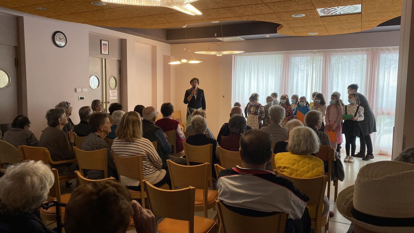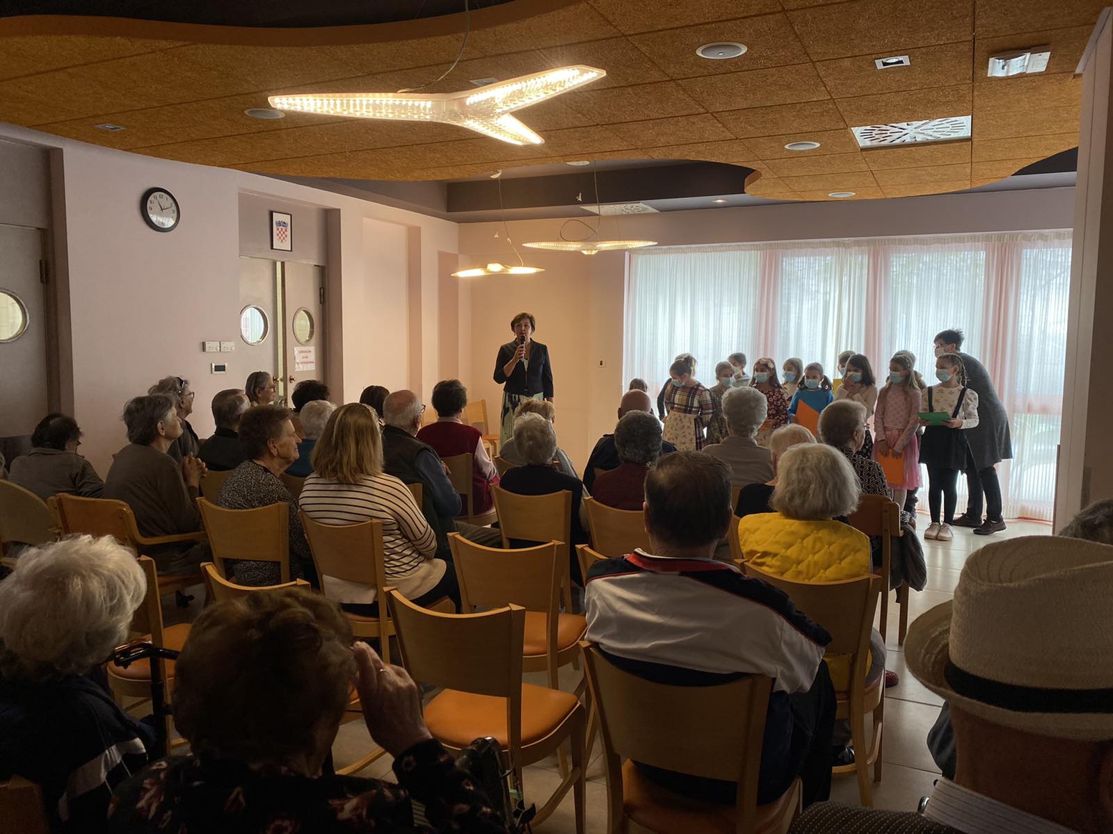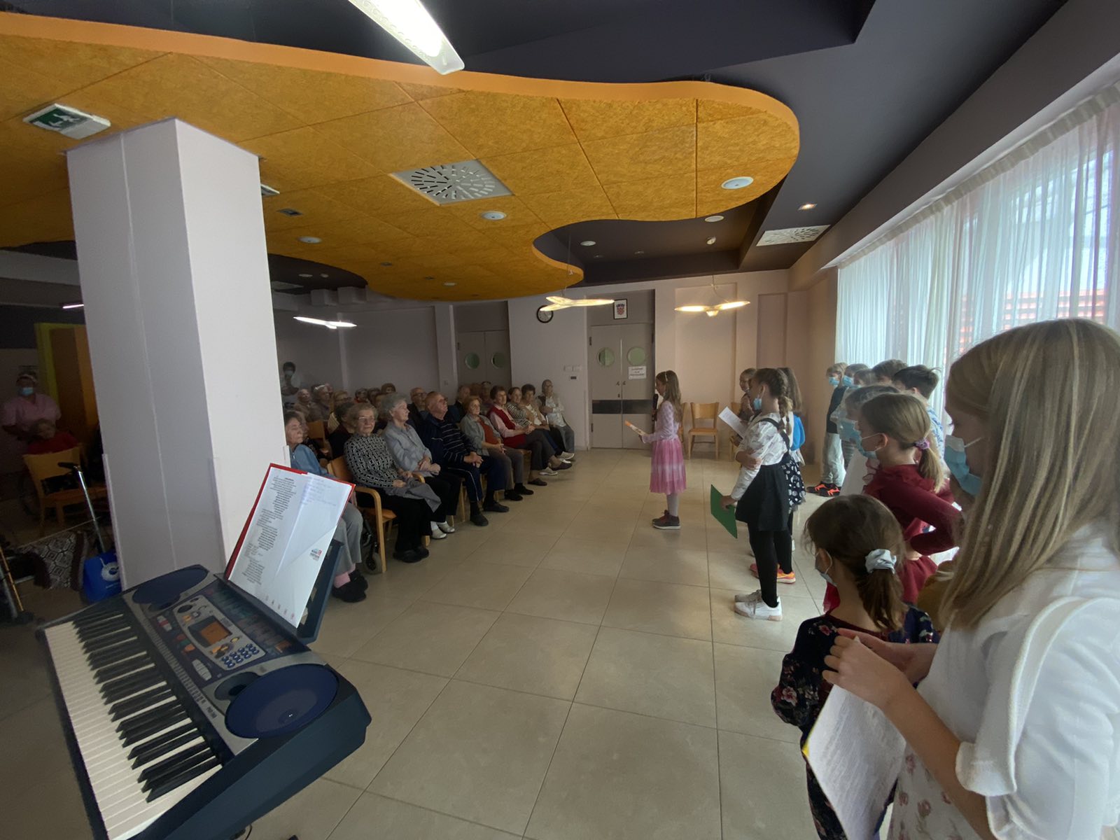 Gli alunni accompagnati dalle insegnanti Vilma Pulin Sirotich, Lolita Njegovan e Sandra Perčić hanno eseguito un ricco programma per gli utenti, canti e balli, recitazioni in italiano e in croato e nel dialetto ciacavo È stata un'occasione per incontrarsi di nuovo perché la maggior parte degli alunni ha orgogliosamente sottolineato di essere già stati, con l’asilo e la scuola in visita ai nonni e bisnonni. Gli alunni hanno regalato alla direttrice Sandra Ćakić Kuhar un loro dono che avevano per gli utentii e hanno promesso di tornare presto a visitarli. Questo incontro di diverse generazioni ha confermato ancora una volta che la comprensione basata sull'amore, indipendentemente da quanto cambia il modo di vivere, sia importante per tutti-dai più piccoli ai più anziani.
