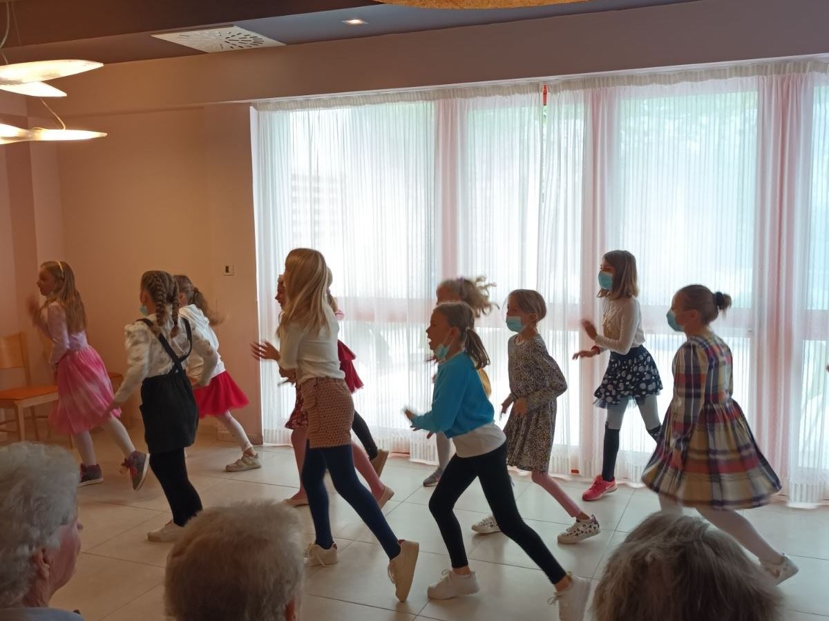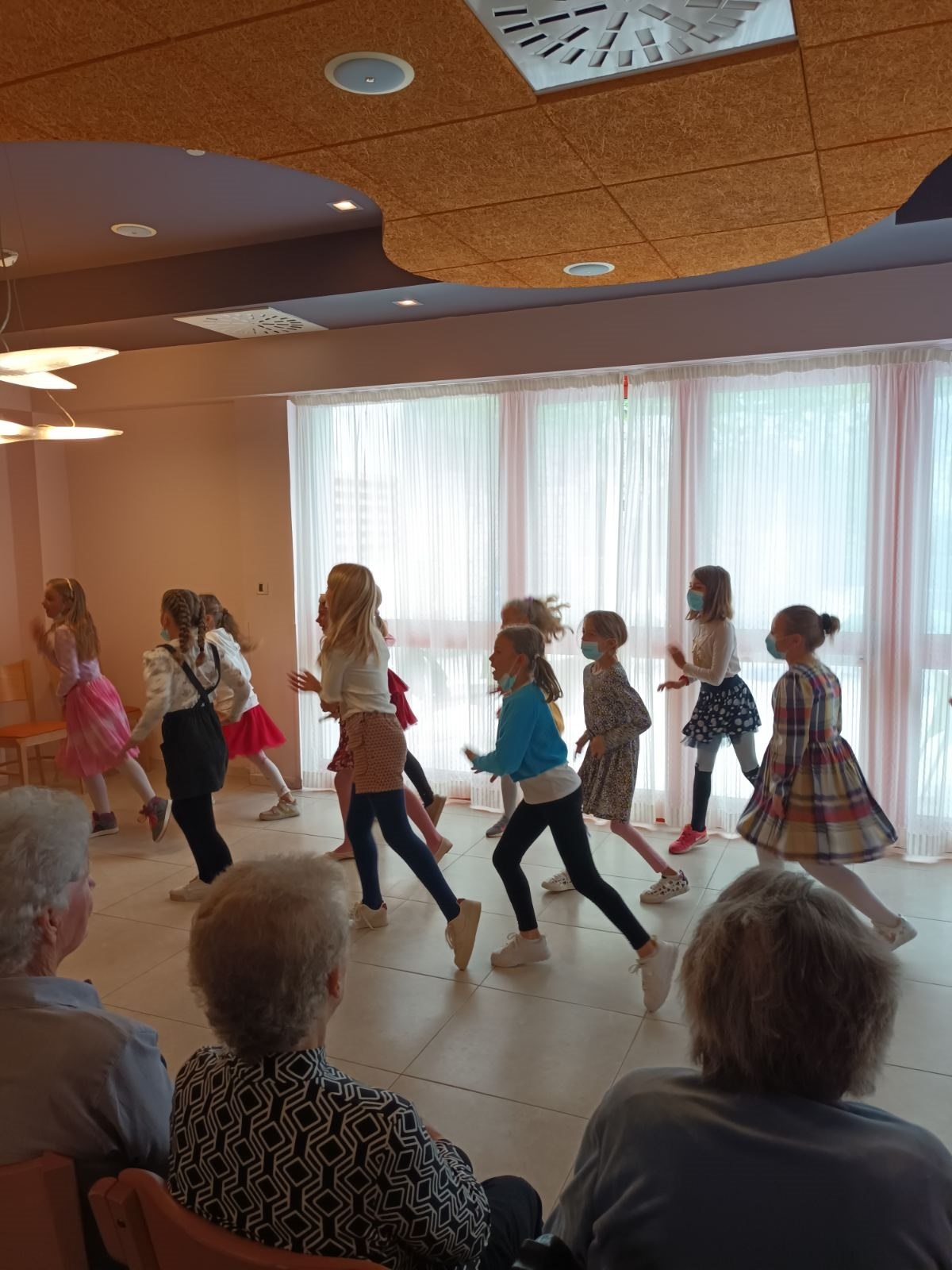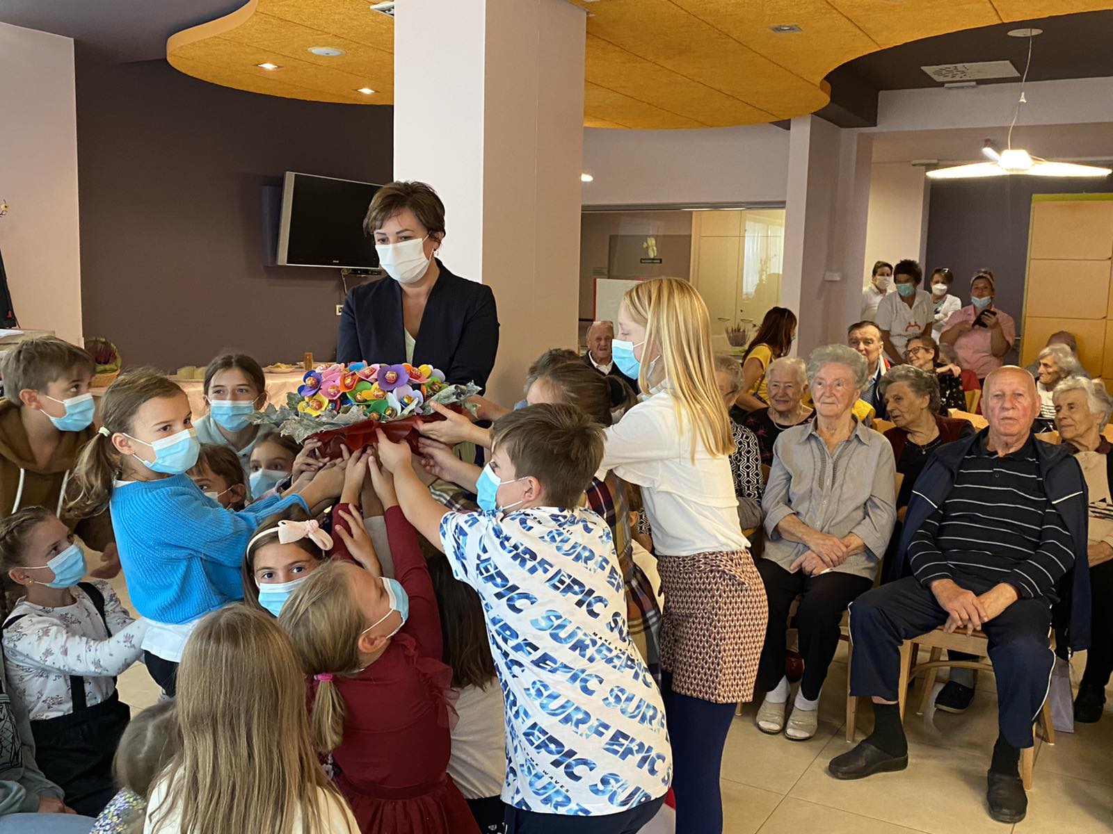 Gli alunni accompagnati dalle insegnanti Vilma Pulin Sirotich, Lolita Njegovan e Sandra Perčić hanno eseguito un ricco programma per gli utenti, canti e balli, recitazioni in italiano e in croato e nel dialetto ciacavo È stata un'occasione per incontrarsi di nuovo perché la maggior parte degli alunni ha orgogliosamente sottolineato di essere già stati, con l’asilo e la scuola in visita ai nonni e bisnonni. Gli alunni hanno regalato alla direttrice Sandra Ćakić Kuhar un loro dono che avevano per gli utentii e hanno promesso di tornare presto a visitarli. Questo incontro di diverse generazioni ha confermato ancora una volta che la comprensione basata sull'amore, indipendentemente da quanto cambia il modo di vivere, sia importante per tutti-dai più piccoli ai più anziani.