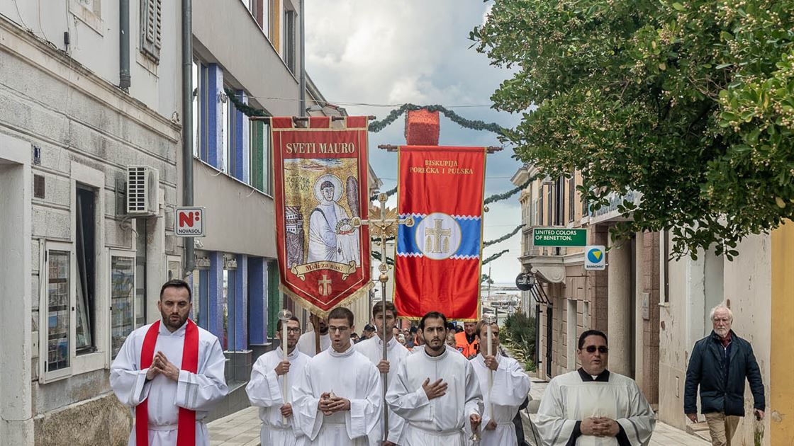 Mons. Zgrablić, parroco di Parenzo per sette anni fino a poco tempo fa, ha sottolineato che è stato un piacere speciale per lui essere di nuovo nella basilica di Parenzo per la messa. Nella sua omelia, ha chiesto perché celebriamo S. Mauro e gli altri martiri di Parenzo. «Perché questa festività? Perché onoriamo le reliquie di S. Mauro e S. Eleuterio portandole in solenne processione per le vie e le piazze della nostra città? Cosa servono ai santi la nostra pietà e gli onori terreni? Tutto questo non è solo un ricordo del passato? I santi non hanno bisogno dei nostri onori e nulla viene a loro dal nostro culto dirà san Bernardo. E’ chiaro che, quando ne veneriamo la memoria, facciamo i nostri interessi, non i loro. «I santi vivono nella pienezza la gioia della vita in amicizia con Dio. Nessuno potrà mai toglierglielo o sminuirlo. Mentre osserviamo la vita dei nostri santi, si accende in noi il desiderio del Dio vivente. Questo desiderio in noi è duplice, dice S. Bernardo. «Il primo desiderio che la memoria dei santi fa nascere o accresce in noi è che beneficiamo del desiderio della loro compagnia e di meritare di diventare concittadini e compagni degli spiriti beati…» «Il secondo desiderio che arde in noi, per la memoria dei santi è che a loro come a noi appaia Cristo, la nostra vita, che anche noi possiamo levarsi con loro nella gloria». Pregando e essendo devoti a S. Mauro e agli altri martiri di Parenzo vogliamo che il loro esempio luminoso risvegli oggi in noi il grande desiderio di essere come i santi: essere felici di vivere vicino a Dio, di vivere nella sua luce, di essere parte della grande famiglia degli amici di Dio, e guardiamo a Cristo che si è glorificato sulla nostra vita, che facciamo già parte di ciò che vale più della vita terrena, che «tutte le sofferenze di questo mondo sono nulla in confronto alla gloria futura che si manifesterà in noi», ha detto l'arcivescovo, congratulandosi con la diocesi e i fedeli di Parenzo per la loro giornata.