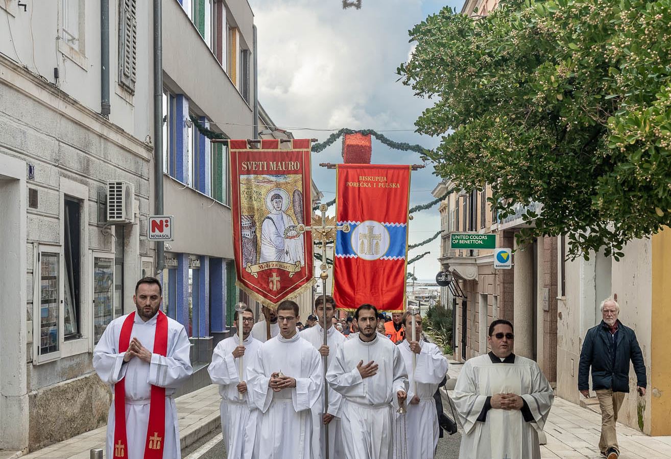 Al termine della messa si è svolta la processione con le reliquie di S. Mauro, lungo le vie del centro storico e del lungomare cittadino e sulla piazza principale. Ricordiamo che l'ultima processione, prima che fosse ristabilita nel 2014, si tenne nel 1934, quando fu uno dei festeggiamenti più grandi per le strade di Parenzo, perché le reliquie del santo patrono, erano state trafugate nel 1354 e portate a Genova (dopo la guerra tra Genova e la Serenissima) furono restituite a Parenzo. Dopo gli ultimi due anni di pausa a causa della situazione epidemiologica, quest'anno, la processione è ritornata per le vie di Parenzo in occasione della celebrazione della festa di S. Mauro.